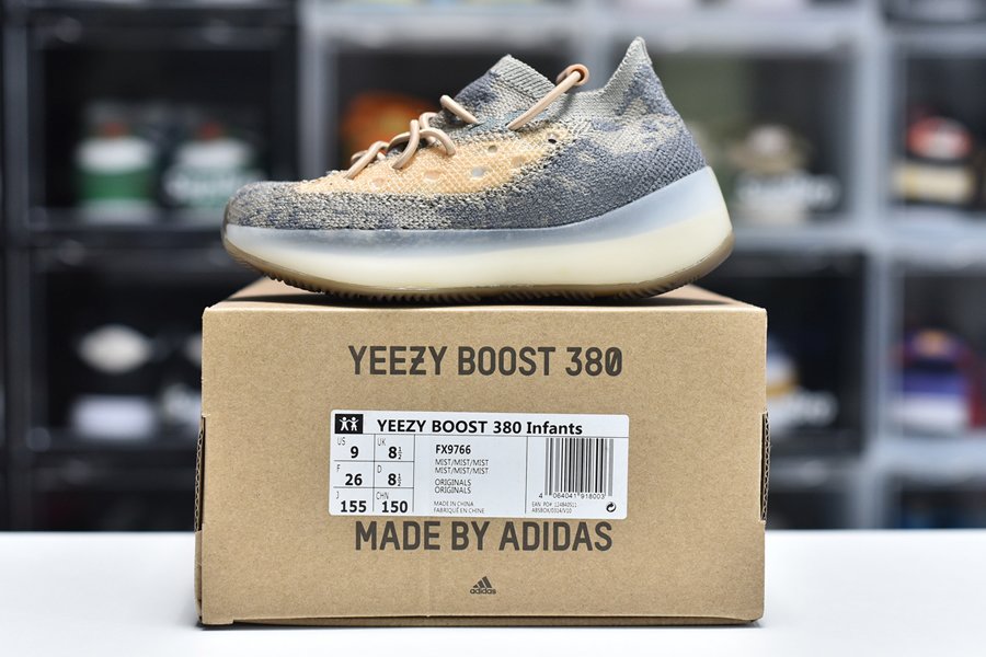 The adidas Yeezy Boost 380 Kids “Mist” is the children’s sizing of the colorway that resembles the surface of a planet in outer space. Hailed by many as the predecessor to the Yeezy Boost 350 V2, the equally covetable 380 model features the winning combination of a breathable Primeknit and Boost cushioned midsole. The multi-colored Primeknit upper displays a grey and light tan camo-like pattern and features a contrasting woven beige design on the mid-panel near the forefoot. Adidas dresses up the laces in the same pale hue and the sock-like collar dons grey ribbing. Semi-translucent rubber covers the midsole to encase the Boost technology encapsulated in the sole. A gum outsole with ridges for traction completes the look.