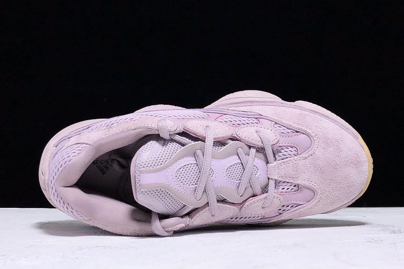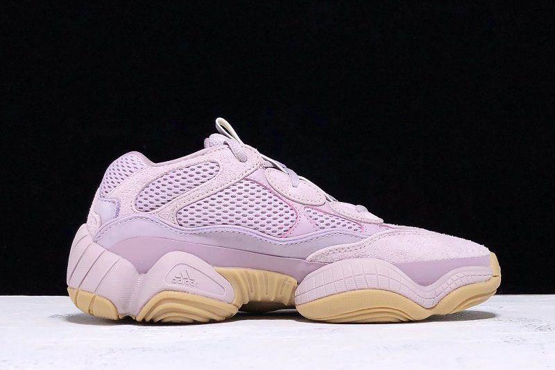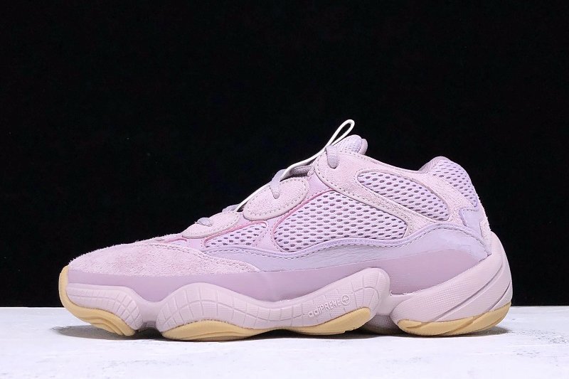 The adidas Yeezy 500 Soft Vision features an upper composed of cow suede, premium leather, and mesh. A rubber wrap along the midsole of the foot provides support and abrasion resistance with reflective piping details around the lace eyelets that add visibility in low-light conditions. The adiPRENE+ cushioning absorbs impact and optimizes rebound while a light rubber outsole provides traction. A soft pinkish hue covers the model’s entire mixed material construction.