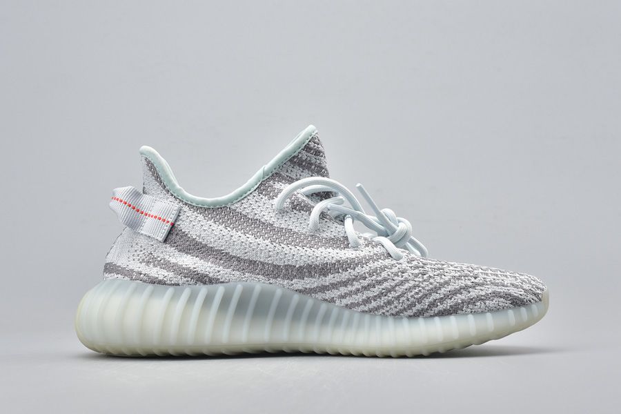 Dressed in a Blue Tint, Grey Three and High Resolution Red color scheme. Featuring a Grey-based upper with hits of Icy Blue and Red covering the “SPLY-350” lettering and stitched pull tab.