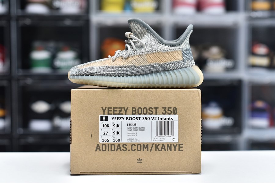 The adidas Yeezy Boost 350 V2 Infant “Israfil” is the tiny infant sizing of the Summer 2020 release that displays an eye-pleasing mixture of muted colors. Like many Yeezy Boost 350 V2 colorways, the “Israfil” is tuned for versatility, comfort, and style. Its breathable Primeknit upper features hues of blue and cream woven into its design. An orange monofilament side stripe on the mid-panel contrasts the subdued appearance. Adidas packs ample Boost cushioning into the sole of this little shoe for infants.