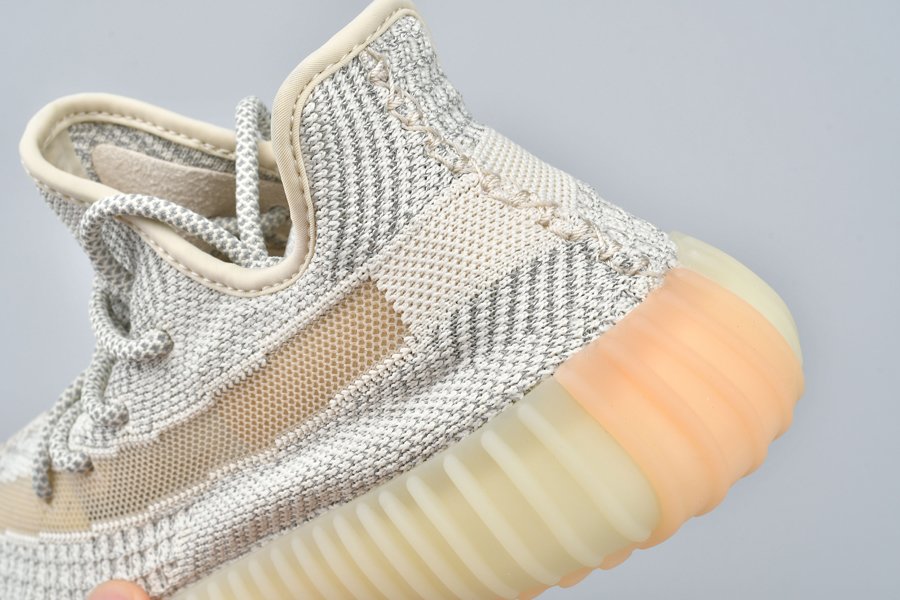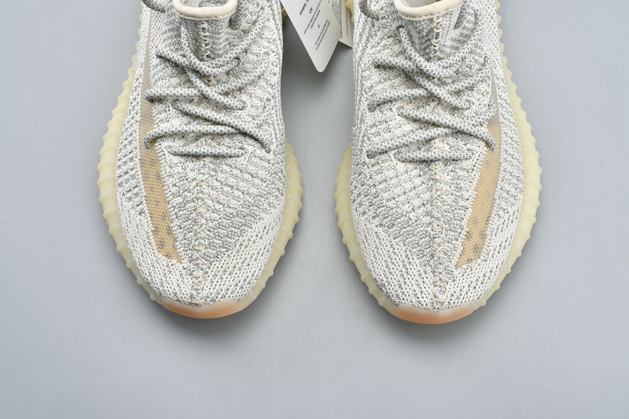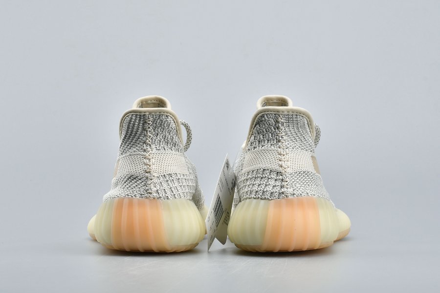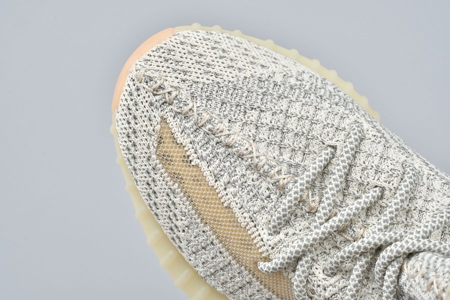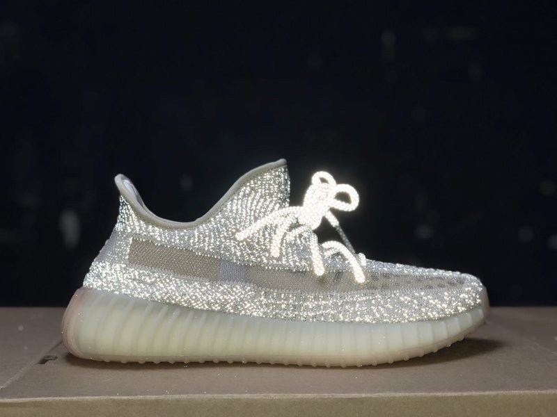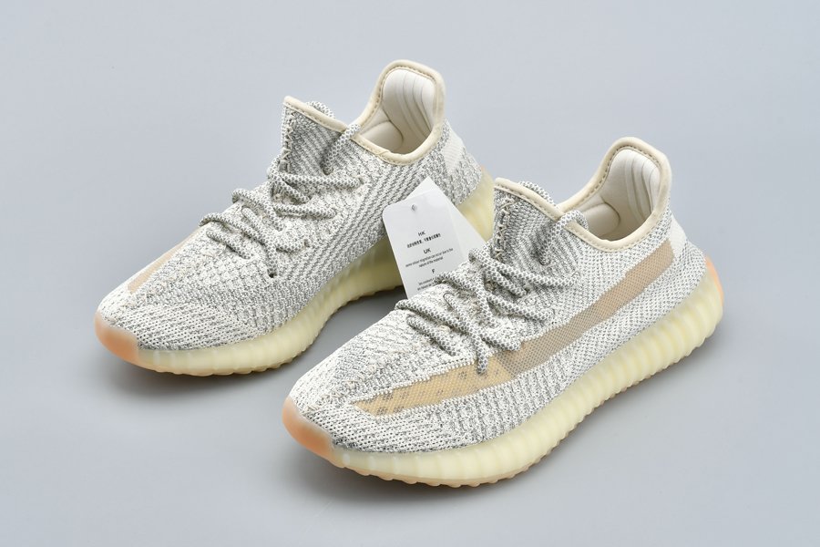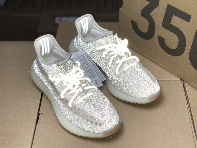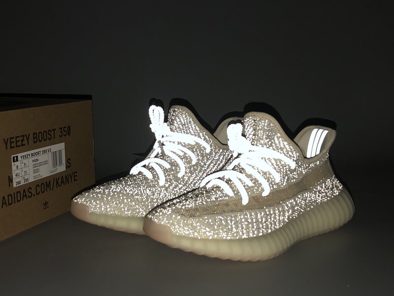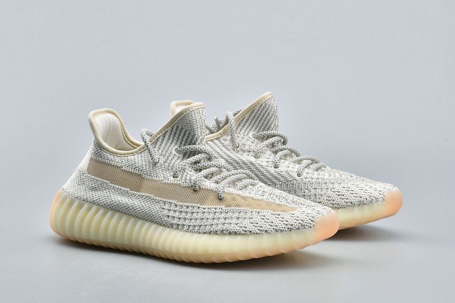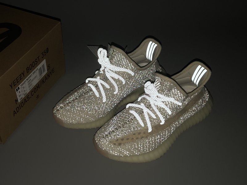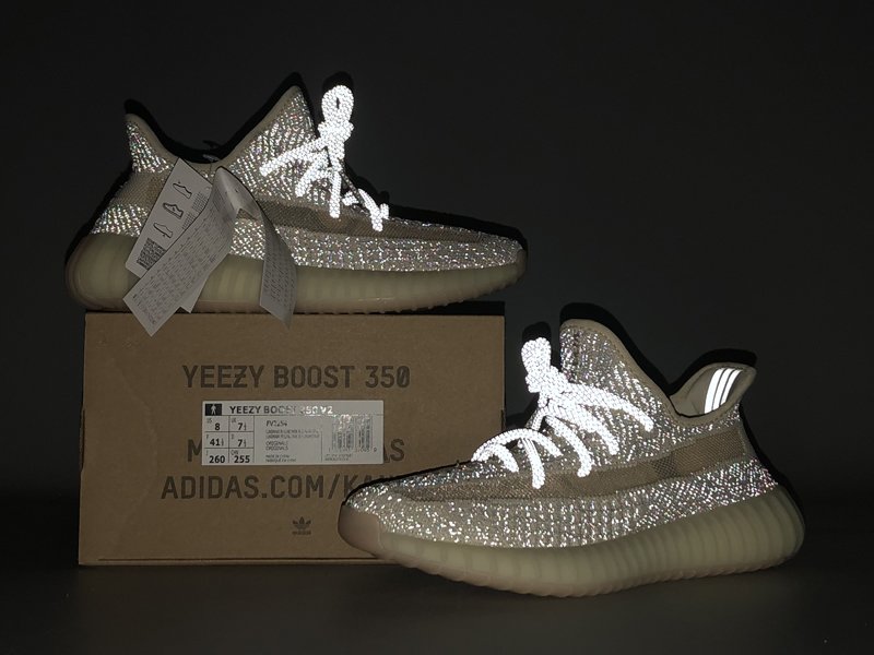 The adidas Yeezy Boost 350 V2 Lundmark includes a Primeknit upper that appears off-white in daylight but reveals reflective details in dim conditions. This rendition ditches the style’s typical heel tab but maintains the full-length adidas Boost cushioning.