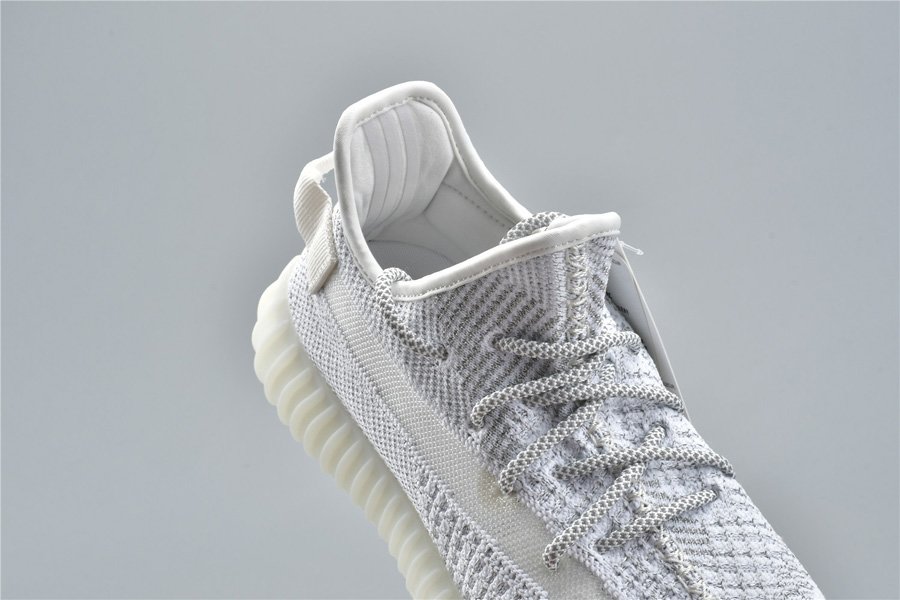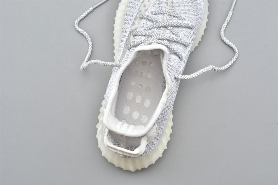 This adidas Yeezy Boost 350 V2 appears identical to the standard Static colorway by Kanye West and adidas, featuring an intricate white and grey pattern across the upper with transparent thread for the side stripes. But hit it with light, and youll see that it also incorporates reflective material within the Primeknit.