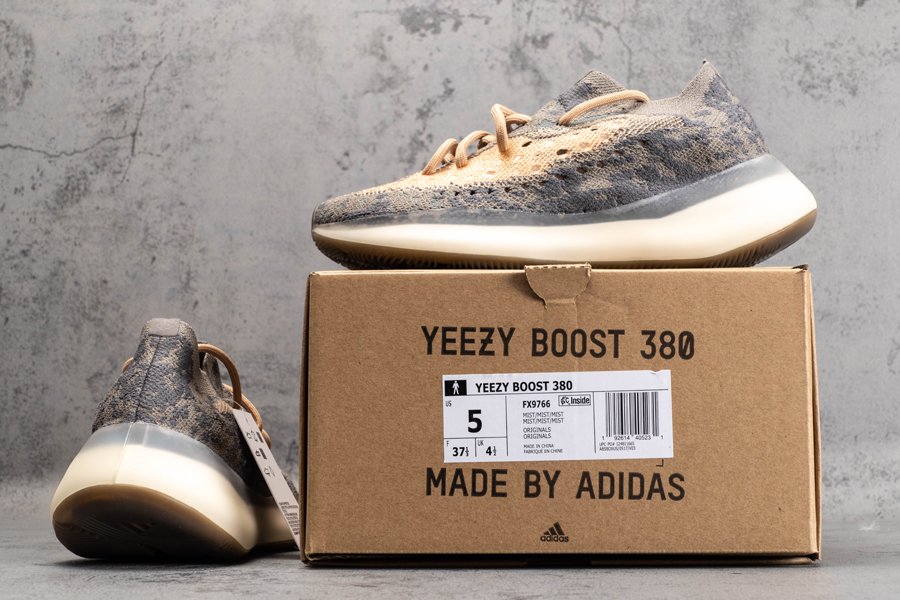 The adidas Yeezy Boost 380 “Mist Non-Reflective” features a bevy of earth tones covering the mid-cut Primeknit upper contrasted by a lighter patch of brown perforated mesh on the midfoot. Capping off the look is a full-length Boost midsole and a light brown outsole.
