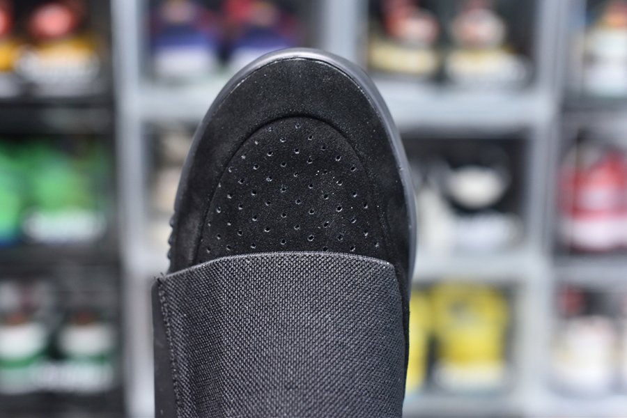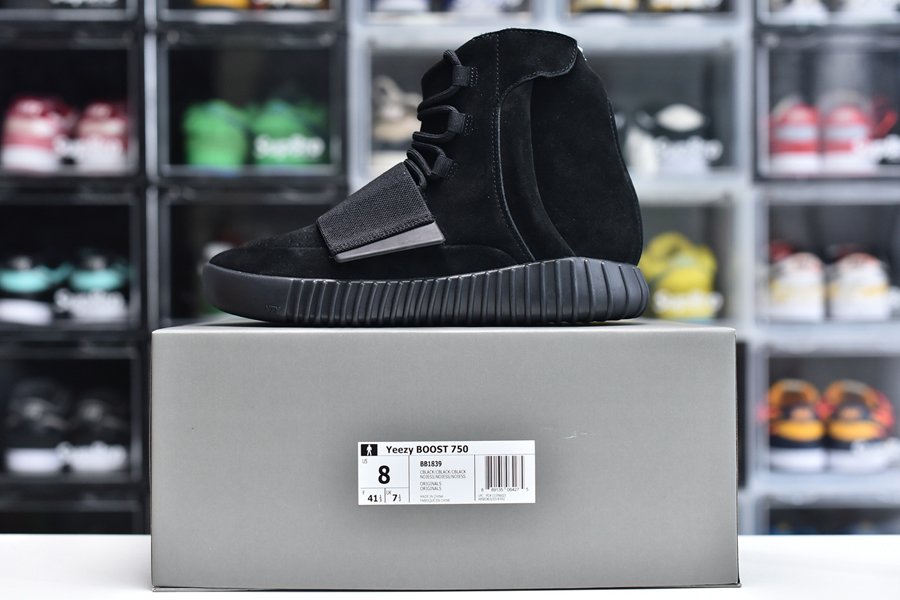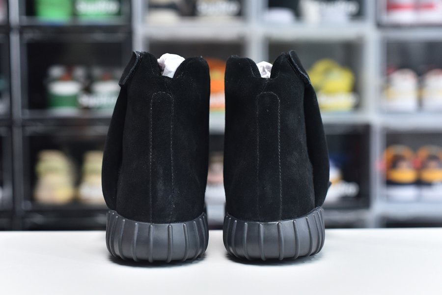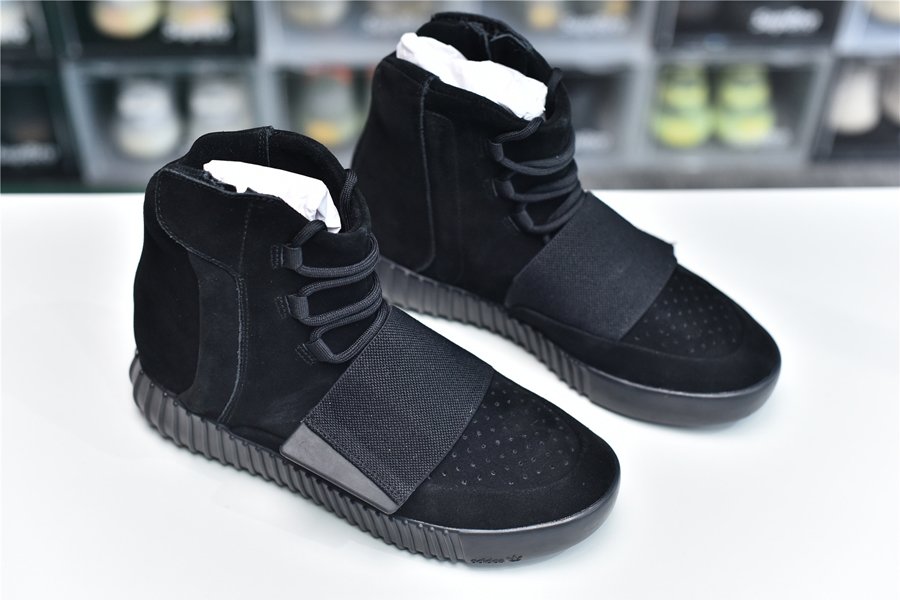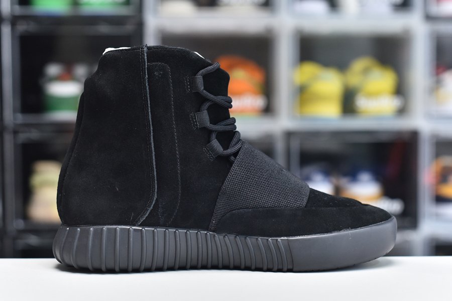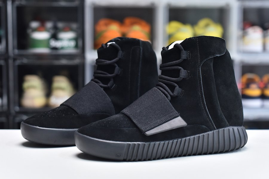 The adidas Yeezy 750 Boost comes in an all-black aesthetics that even has the Boost infused sole unit rocking the black motif. The 750 is made out of a premium suede upper that is accompanied by the velcro strap that goes right across the midfoot part of the shoe.