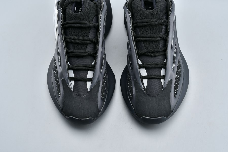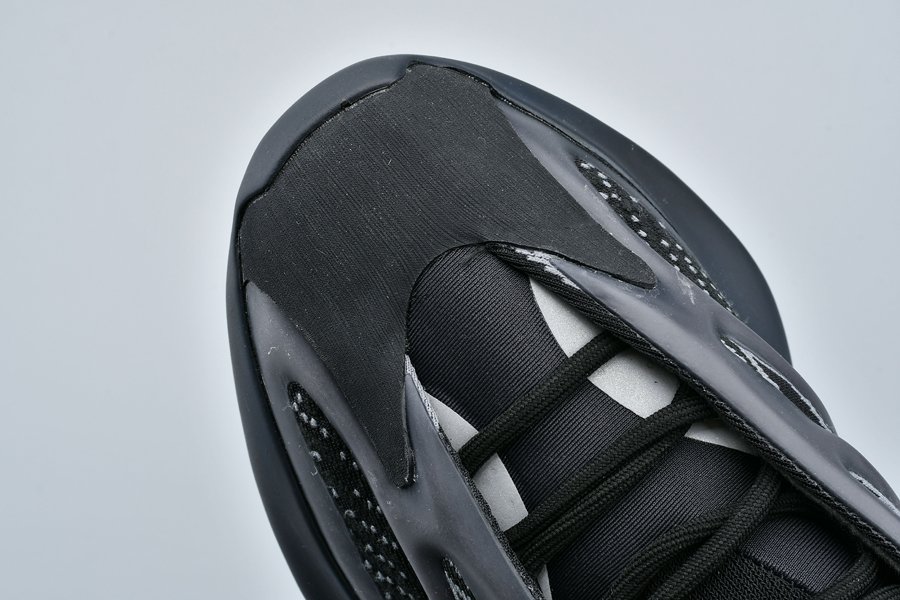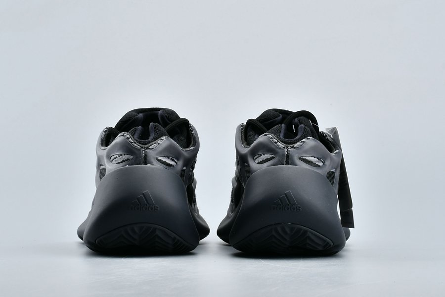 With a Primeknit base for breathability and comfort, this is overlaid by a matte black cage that wraps around the entire shoe for added structure and stability. A thick foam makes up the sockliner and tongue, the latter of which is borrowed from the Yeezy 500 High “Slate”.