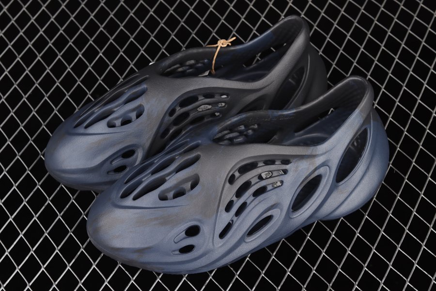 The blue adidas Yeezy Foam Runner boasts an abstract pattern on the upper, as opposed to the familiar monochromatic look. In true Foam Runner fashion, the “Mineral Blue” makeup features a one-piece construction made from algae and lightweight EVA, incorporating oval holes throughout to enhance breathability.