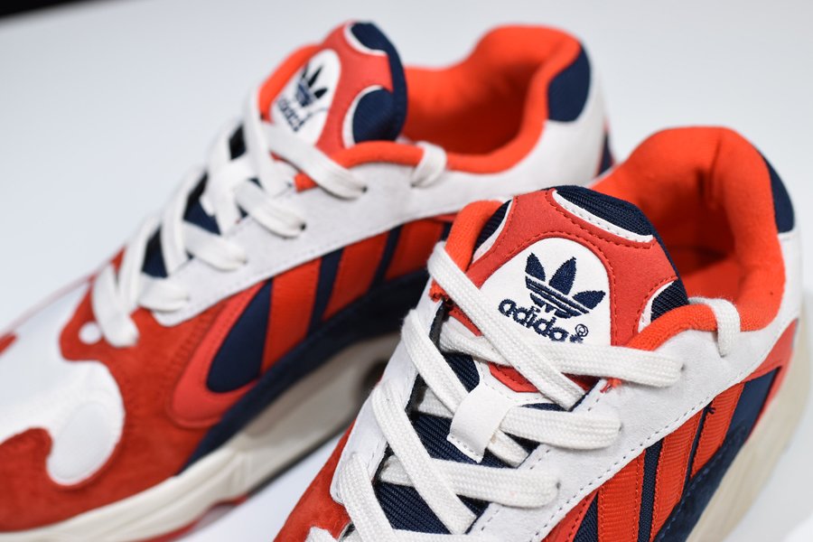 High-quality suede and nylon craft this masterpiece in a way that it seems like a hot mess! There’s a nubuck layer at the back for more security and sass. Its chunky and beefy structure gives away the comfort it offers. Clean white leather overlaps on the top of full crimson nubuck rear and suede front. The toe box also sees a white lap. Soft and padded tongue helps a natural on-off feature. The sidewall three stripes stick on the black nylon window, and the medial inner midfoot wears a navy suede patch.