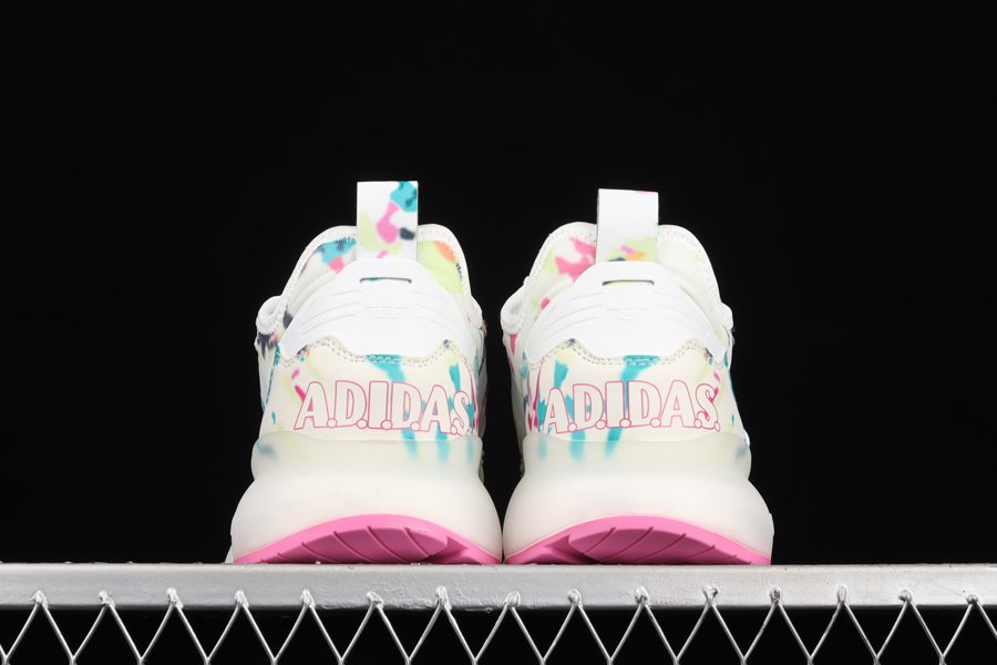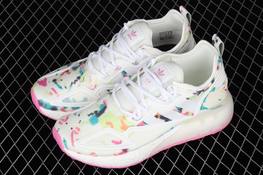 The adidas ZX 2K Boost Big Kid ‘Watercolor’ showcases multicolor graphics on a running-inspired shoe that continues the legacy of the brand’s iconic ZX franchise. The white textile upper is made with adidas Primegreen, meaning that 50% of the materials comprise recycled content. ‘A.D.I.D.A.S.’ is inscribed in block letters on the back heel, while the sockliner is decorated with a graphic that reads ‘All Day I Dream About Summer.’ Responsive cushioning arrives via a partially caged Boost midsole. Underfoot, a rubber outsole in Screaming Pink offers durable traction.
