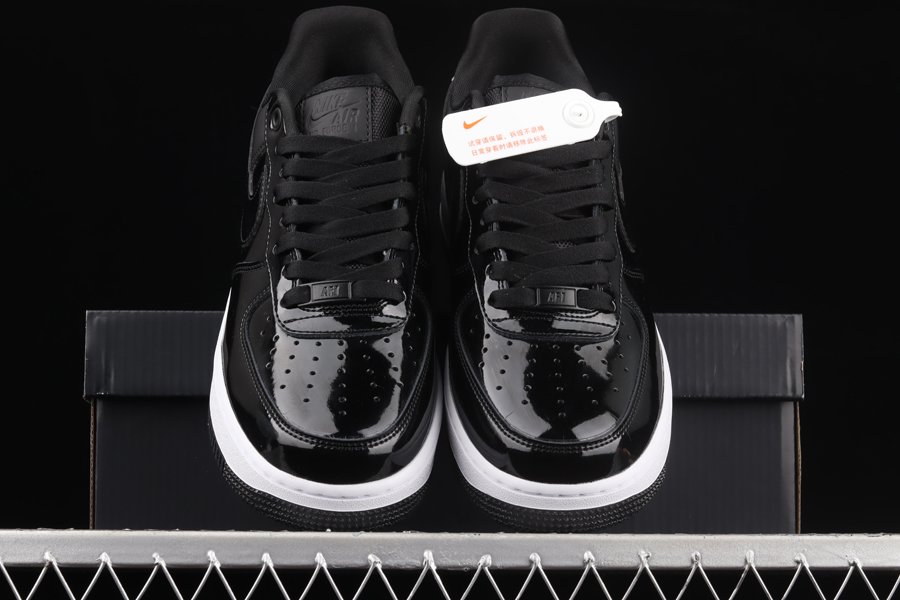 The classic shape of the Air Force 1 is maintained but thanks to this luxurious upgrade, it becomes even more eye-catching. That shiny leather remains somewhat understated thanks to the full black colourway, complimented by a matte panel across the heel.
