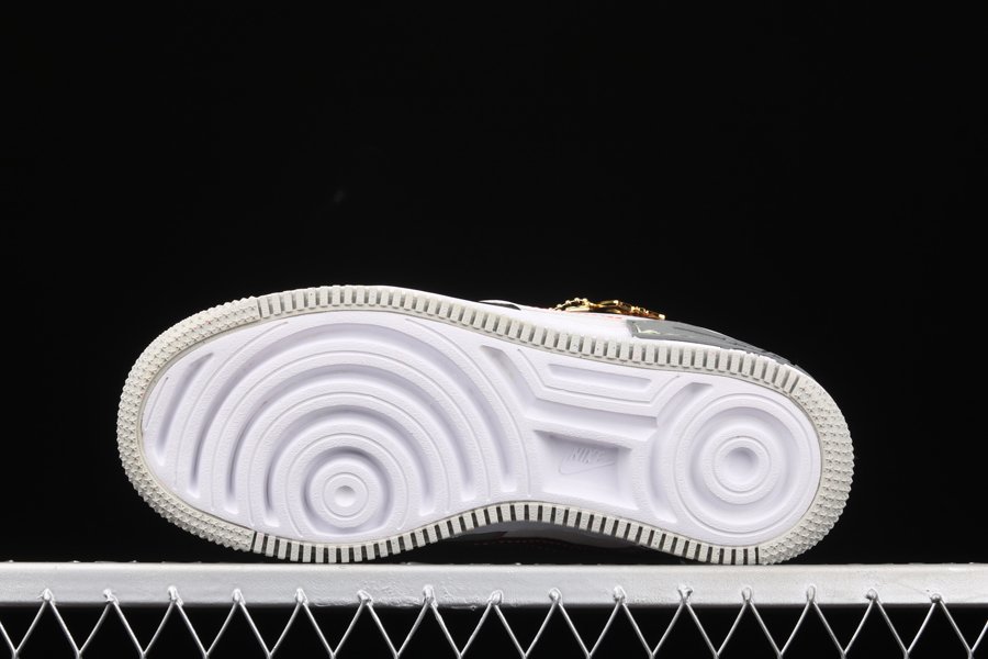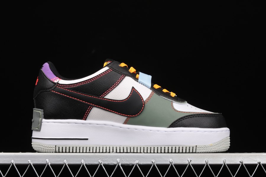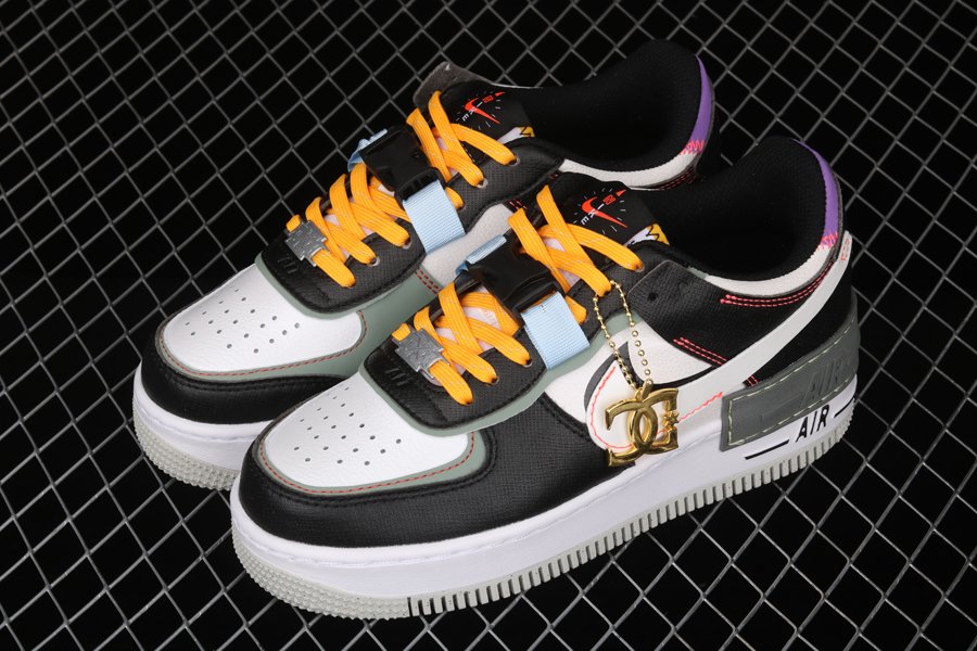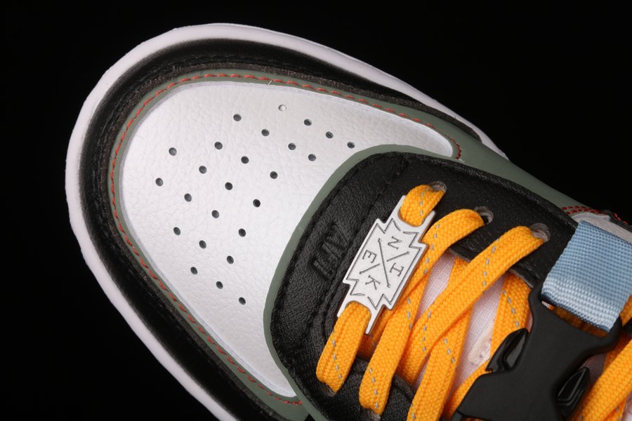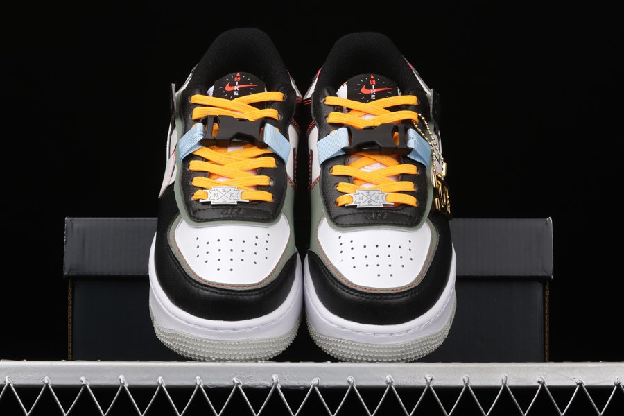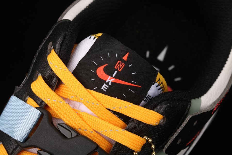 Dressed in a Black, White, and Spiral Sage color scheme. The Air Force 1 Shadow features details that resemble tools used for camping or hiking, like the compass graphics on the tongues and insoles. It comes with extra layers, Neon contrast stitch, and Yellow laces. Much like the rest of the models from the pack, the shoe is completed with a buckle added to the lacing system.