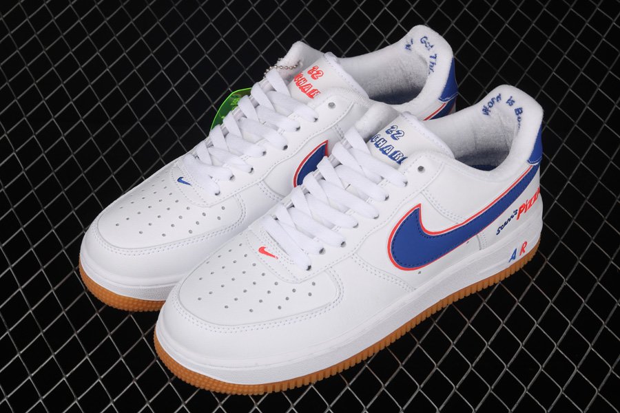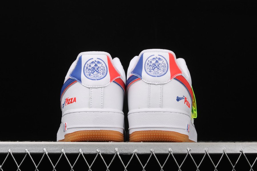 The detail-packed Sacrr’s Pizza x Nike Air Force 1 Low sneakers include a shape that mimics the OG construction, a mix of materials including leather and denim, 3M details, mismatched Swooshes, and custom embroidery and branding throughout.