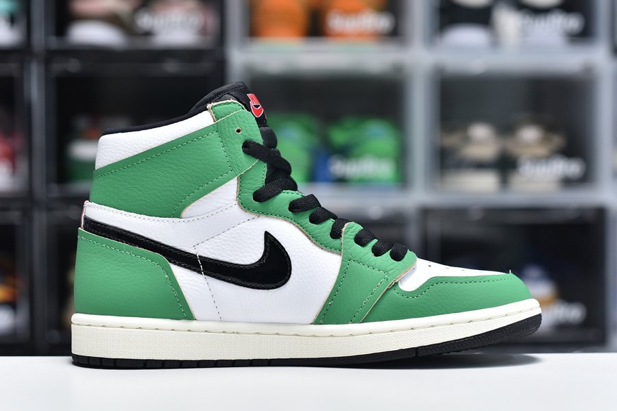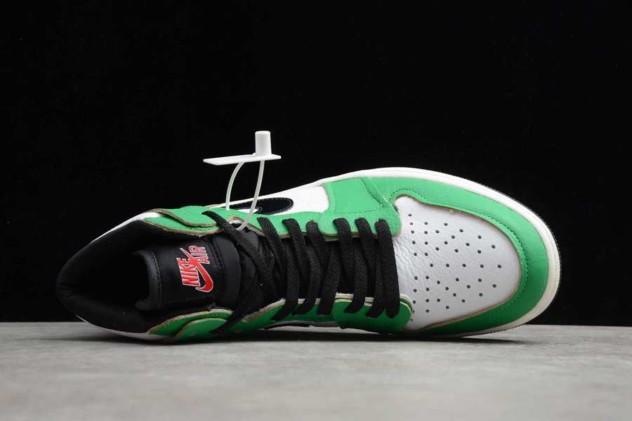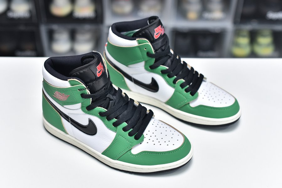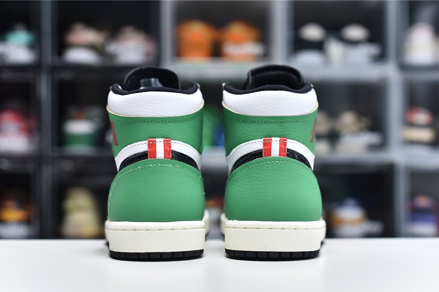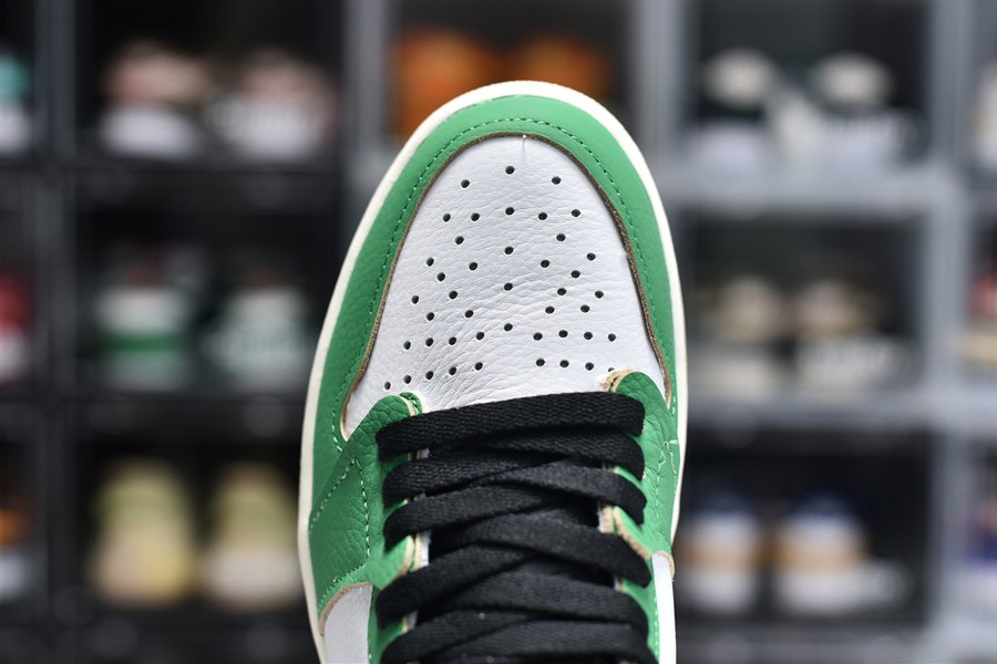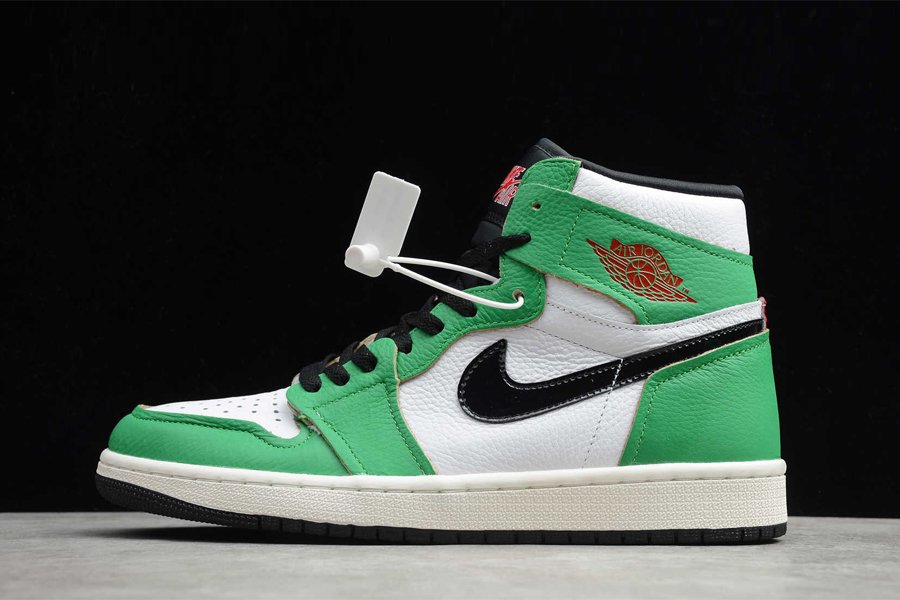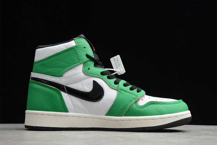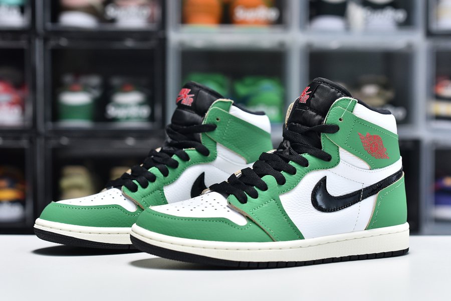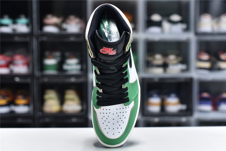 The to and side paneling is kept white while Black overlays make up the toe and Nike Swoosh and green overlays make up the heel. Black laces match a black Wings logo as well as green tongue branding matches perfectly with a green rubber outsole.