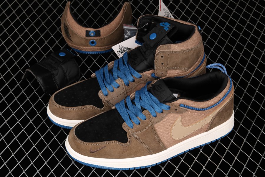 The Air Jordan 1 Switch features a zippered ankle collar that allows you to wear the pair as a high or low. This offering comes dressed in Brown tones throughout its upper paired with Blue contrasting accents atop a White midsole. Other details includes a mini Swoosh on the lateral side of the toe.