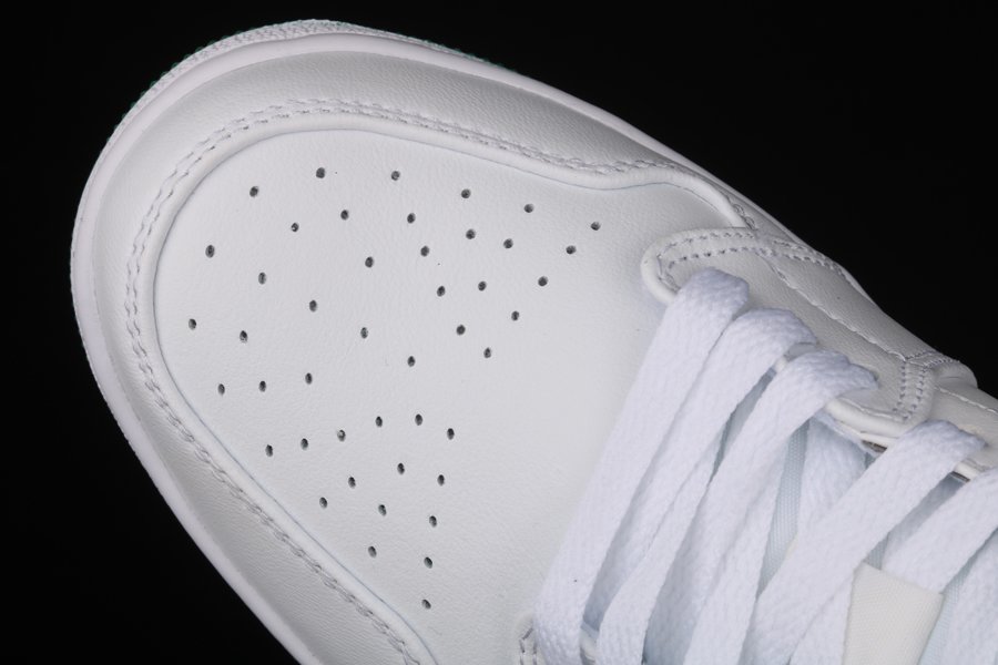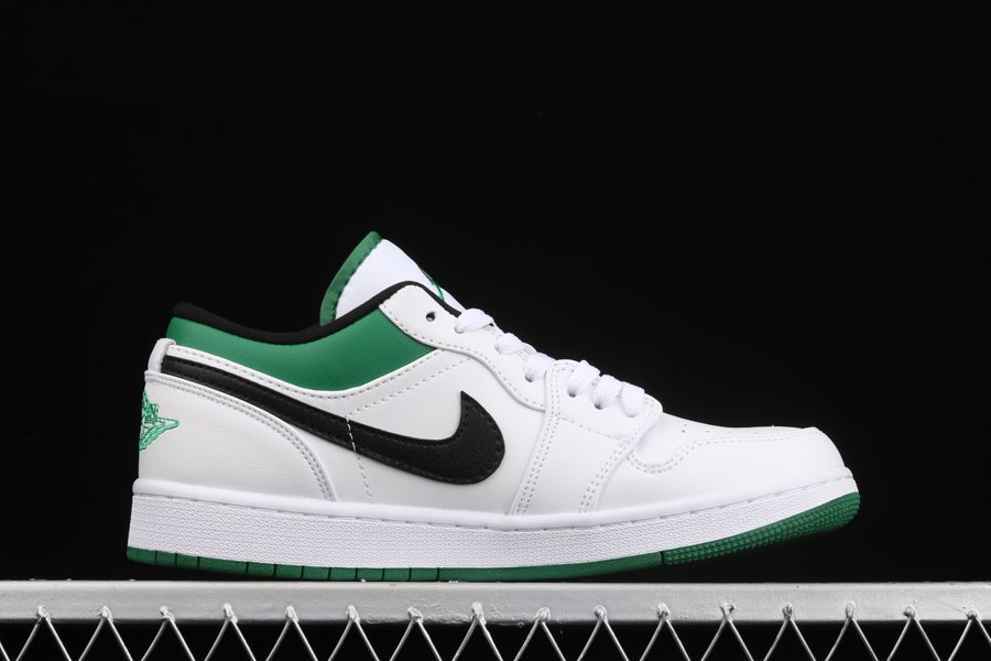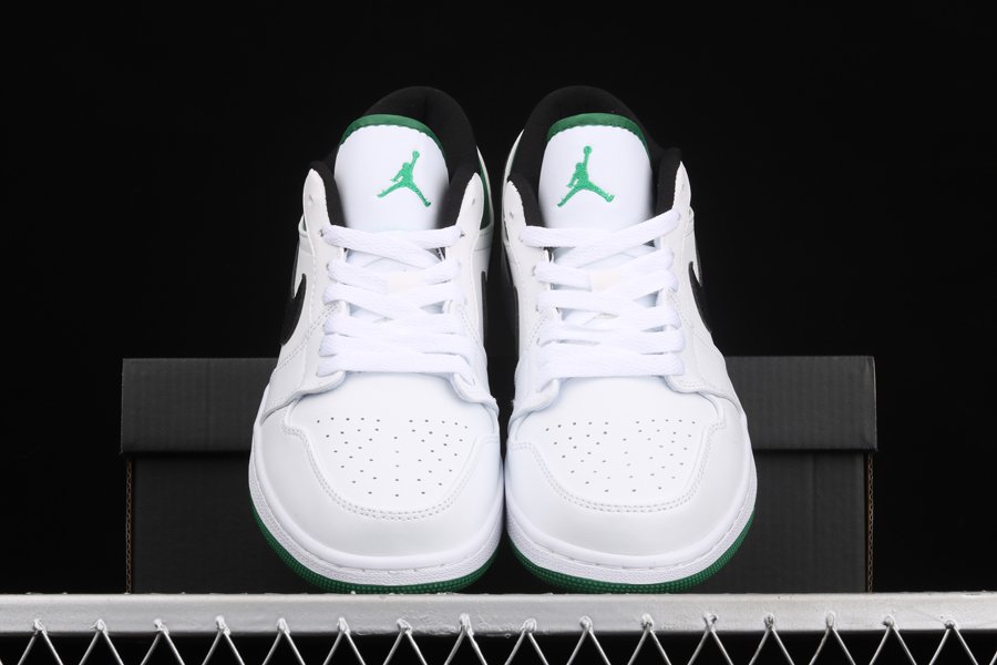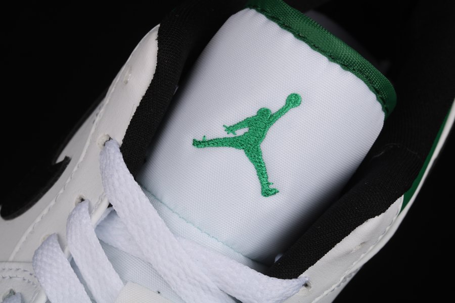 Simple in style, the kicks start off with bright white leather materials that form most of its upper half, the quarters and mid-foot being smooth in feel while the overlays are done up with tumbled textures. Laces and synthetic tongues follow suit with the angelic finishes while the side Swooshes and sock liners deliver stark black trim. Its titular shade is by far the highlight as it is planted onto the collars, Jumpman insignias on the tongues as well as the ball-and-wings logos that are embroidered into the heels. There’s no evidence of coloring on the midsoles, but the outsoles keep the theme going with its “Lucky Green” paint job.