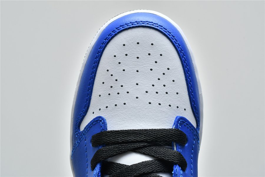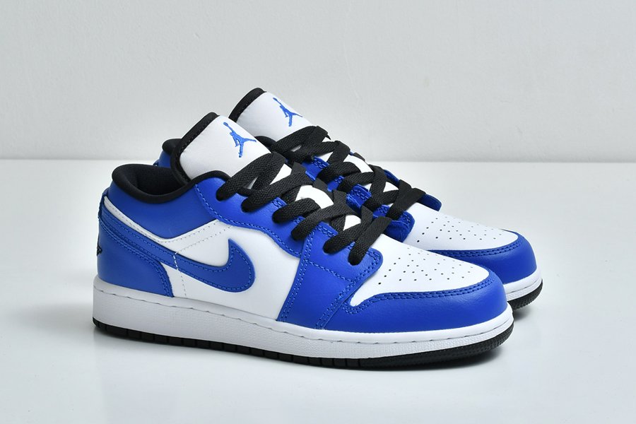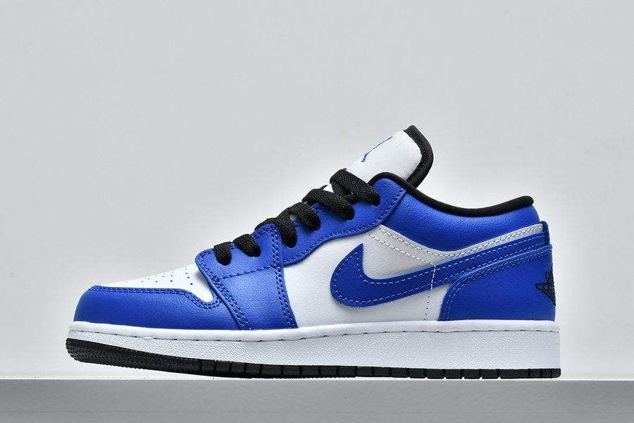 The Air Jordan 1 Low GS “Game Royal” is a timeless colorway of Michael Jordan’s first signature shoe fitted for children. Part of Jordan Brand’s Summer 2020 releases, this “Game Royal” in the alternate Jordan 1 Low silhouette is clean, casual, and always in style. Details include a white leather base with royal blue leather overlays on the forefoot, eyelets, collar, and heel. A Game Royal Swoosh hit can be found on either side, and a black embroidered “Wings” logo is stitched onto the heel. The white leather tongue with black nylon accenting is paired with black laces.