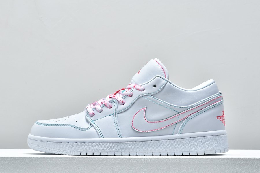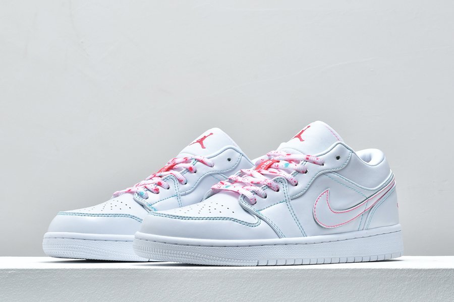 Designed exclusively for the kids, this new colorway of the Air Jordan 1 Low definitely comes with the fun and bright colors. The shoe starts off with a white smooth leather construction that dominates the upper which is then contrasted by bright green and pink stitching all throughout the shoe as well as on the laces and the branding on the tongues and heels. A different shade of white then hits the rubber soles to cap things off on this Jordan 1 Low.
