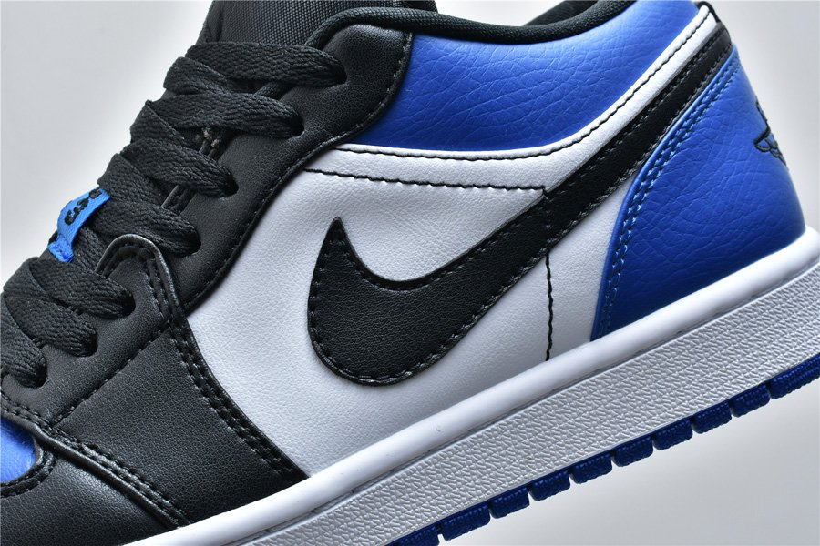 Taking on a variation of the OG Royal colorway, this Air Jordan 1 Low features a smooth leather construction all throughout the upper with royal blue hitting the toe and heel and white being placed on the side panels. The rest of the upper is done in black, including the leather Swooshes, laces, nylon tongue, and inner liner. A white midsole and royal blue rubber outsole finish things off on this Air Jordan 1 Low.