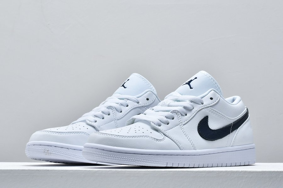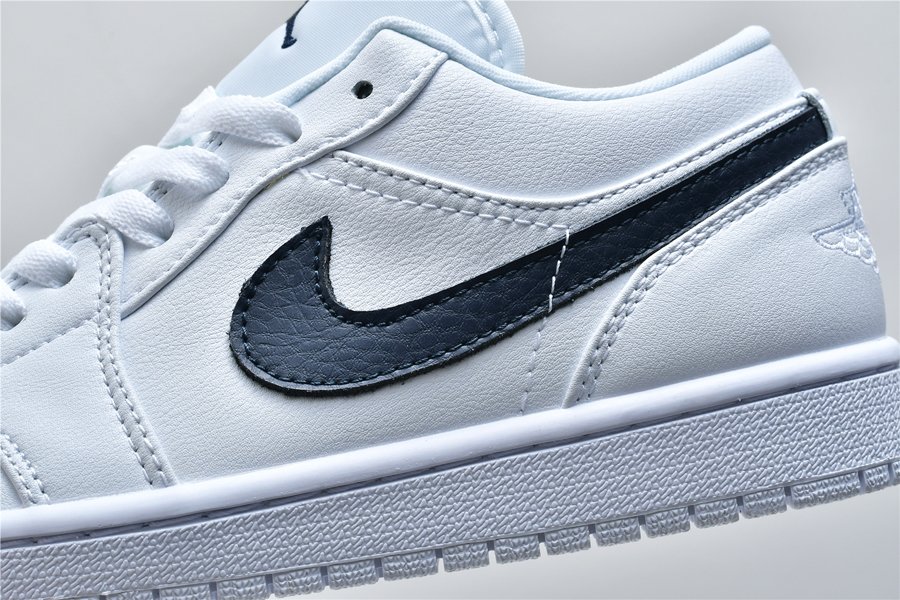Sporting an all-white base, this Air Jordan 1 Low ushers in Navy branding hits on the tongue, insoles, and profile Swooshes, while the embroidered Wings motifs on the heels remain tonal white. As for its material makeup, the entire upper adorns a smooth leather, the tongues take on a textile finish and the Swoosh overlays are tacked on in beautiful tumbled leather.