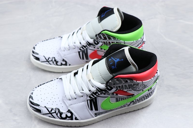 A white base has been used with black logos running throughout the upper, while different coloured Swooshes lay on each side in either red or a loud green. There is also some half-and-half action going on the back, with the heel counter being split into two contrasting colours.