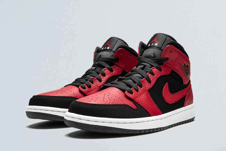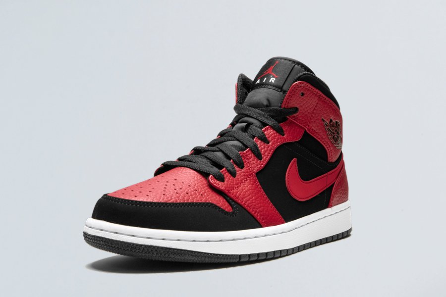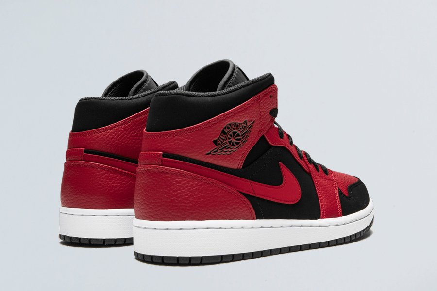 Dressed in the traditional color scheme. This version features a Black-based upper with Red tumbled leather overlays. Wings ankle logo, Jumpman tongue tag, White midsole, and a Black rubber outsole completes the design.