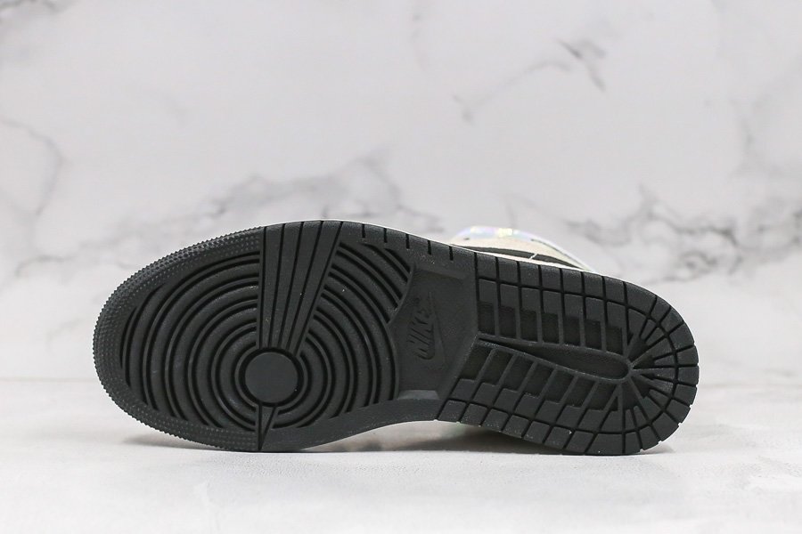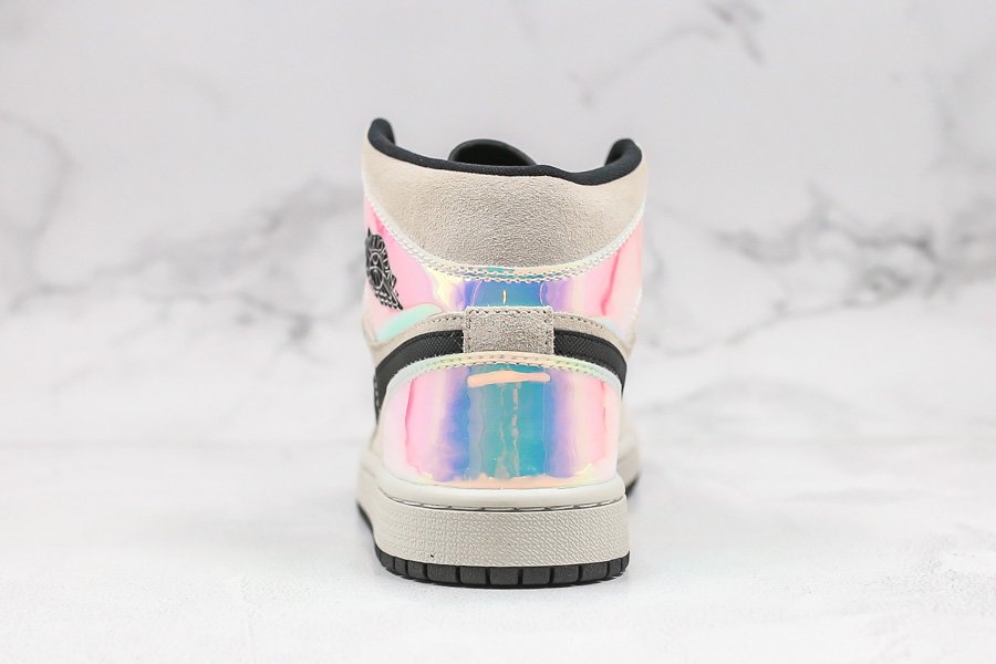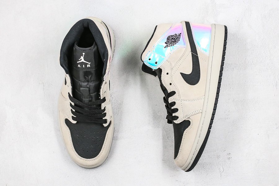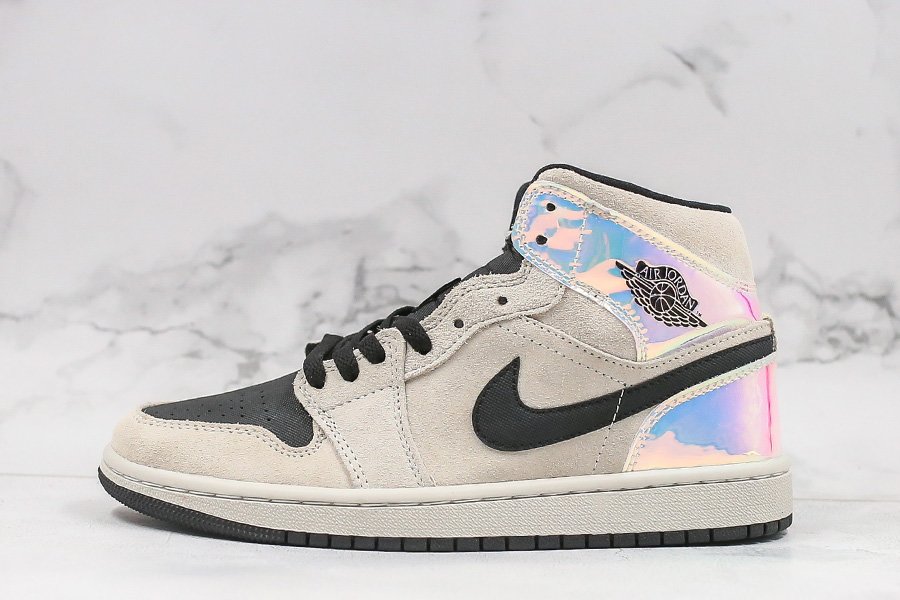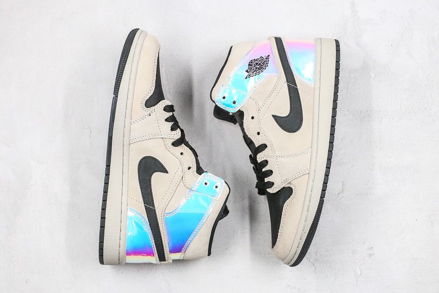 The Air Jordan 1 Mid continues to impress left and right and that remains the case with this new pair we see above that is highlighted by iridescent detailing. Using different materials than we’re used to seeing on the Jordan 1 Mid, this pair starts off with a black ballistic mesh on the toe and Swooshes on the side panels along with a pink suede on the overlays. The eye-catching feature of this Jordan 1 Mid is undoubtedly the iridescent detailing on the heel/ankle. Jumpman logos on the tongues, a pink rubber midsole, and a black rubber outsole wrap things up on this Air Jordan 1 Mid.