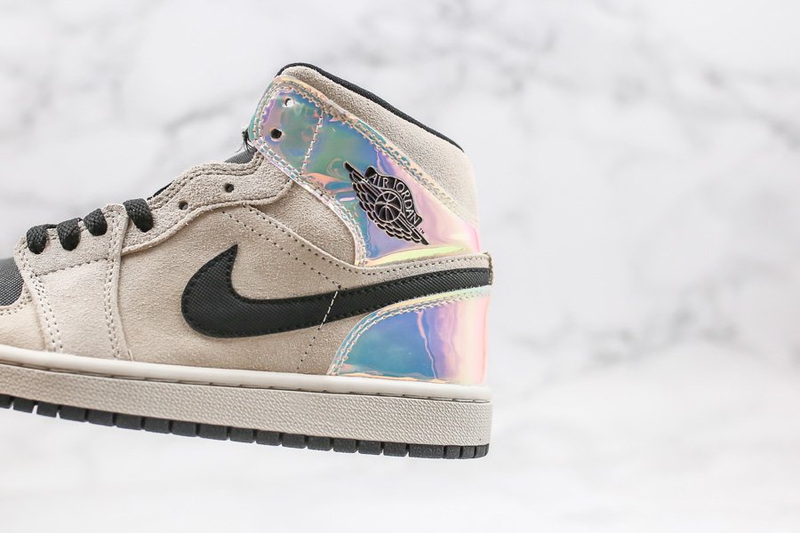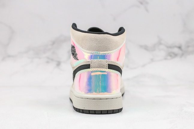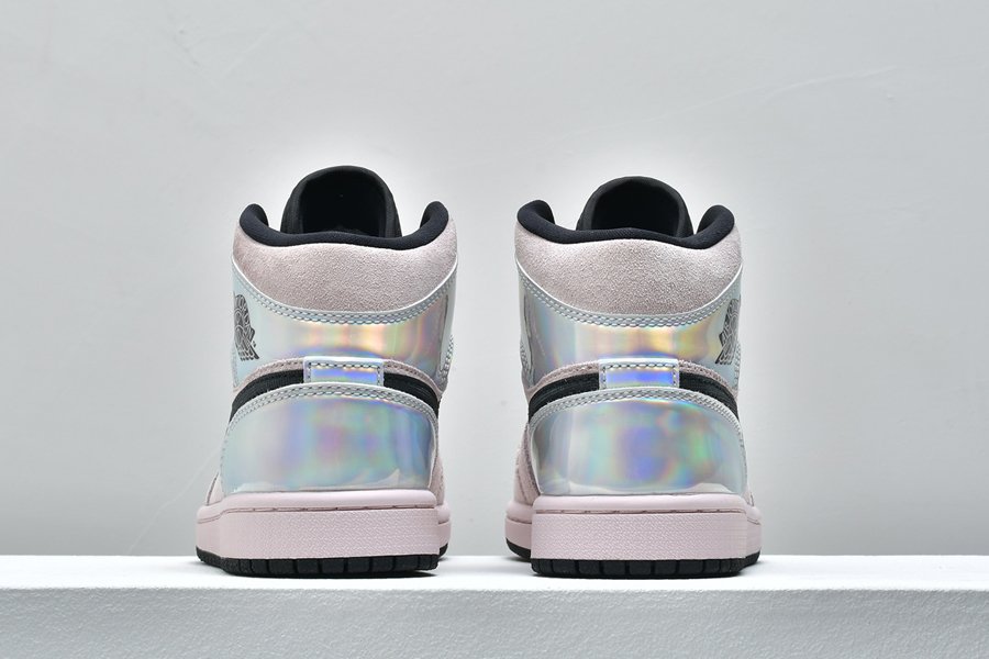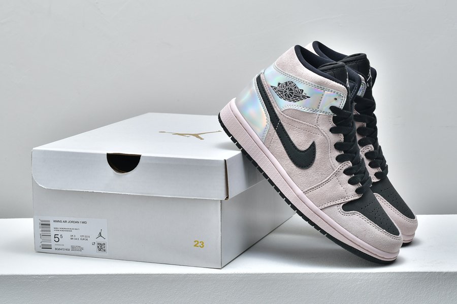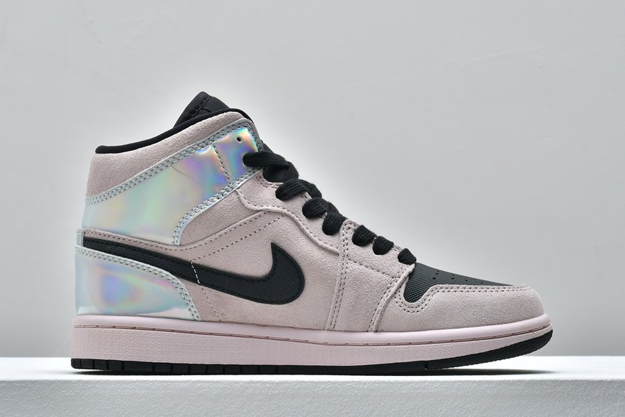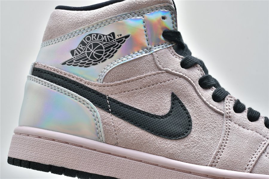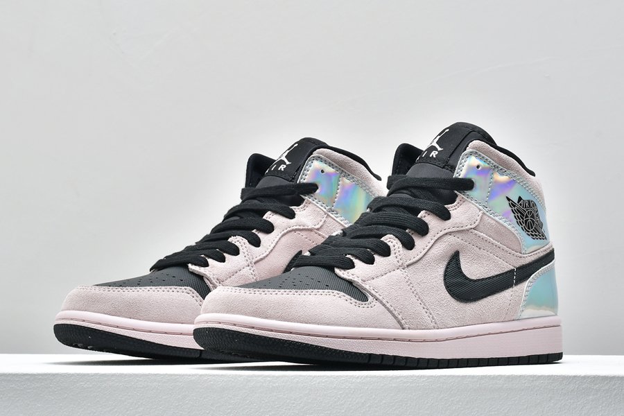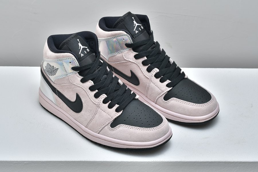 The Air Jordan 1 Mid continues to impress left and right and that remains the case with this new pair we see above that is highlighted by iridescent detailing. Using different materials than we’re used to seeing on the Jordan 1 Mid, this pair starts off with a black ballistic mesh on the toe and Swooshes on the side panels along with a pink suede on the overlays. The eye-catching feature of this Jordan 1 Mid is undoubtedly the iridescent detailing on the heel/ankle. Jumpman logos on the tongues, a pink rubber midsole, and a black rubber outsole wrap things up on this Air Jordan 1 Mid.