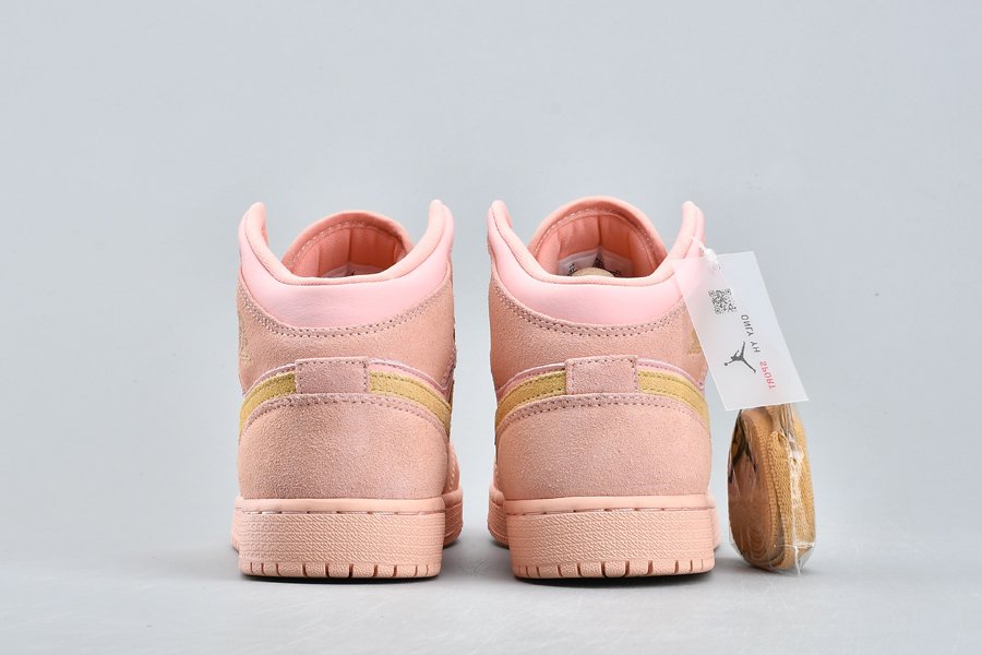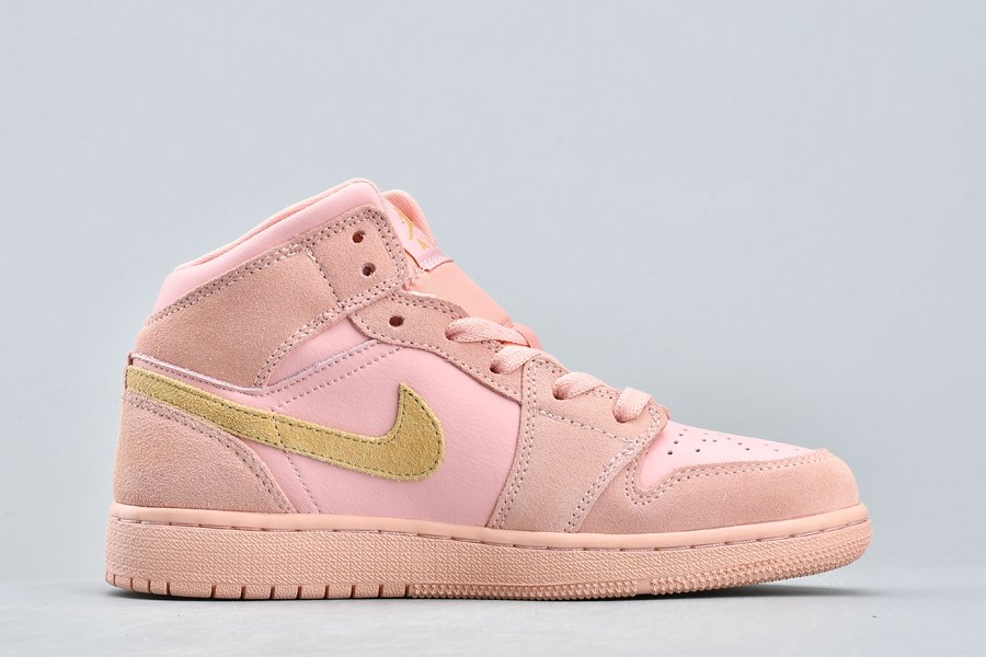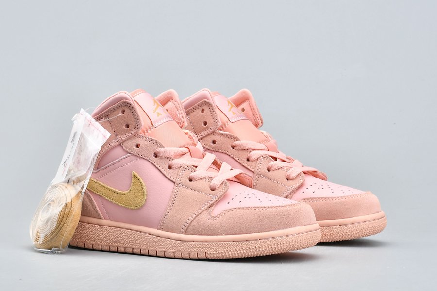 The Air Jordan 1 Mid “Coral Gold” takes a tonal approach as it gets covered in Coral all throughout the upper which has been constructed out of a combination of leather and suede. Keeping things luxurious is the addition of gold on the suede Swoosh, the Wings logo, and the Jumpman branding on the tongue. A Coral rubber sole unit down below finishes things off proper.