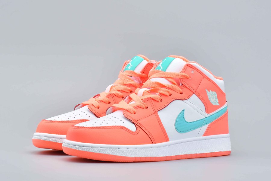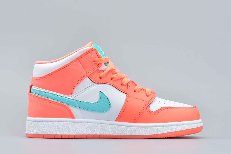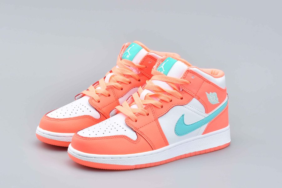 This Air Jordan 1 Retro GS White/Crimson Pulse/Light Aqua Shoe blends heritage style and modern comfort. Its upper features genuine and synthetic leather for durability, while flex grooves in the outsole give little feet natural range of motion.
