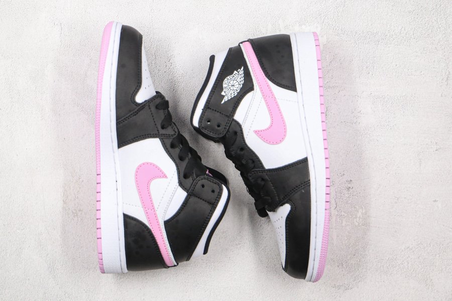 Air Jordan 1 Mid GS White/Light Arctic Pink-Black 555112-103