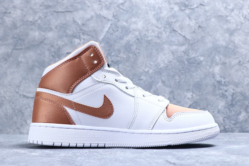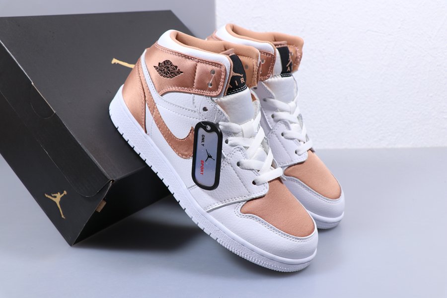 The Jordan 1 Mid White Rose Gold GS brings a whole new, feminine look to the basketball style sneaker.