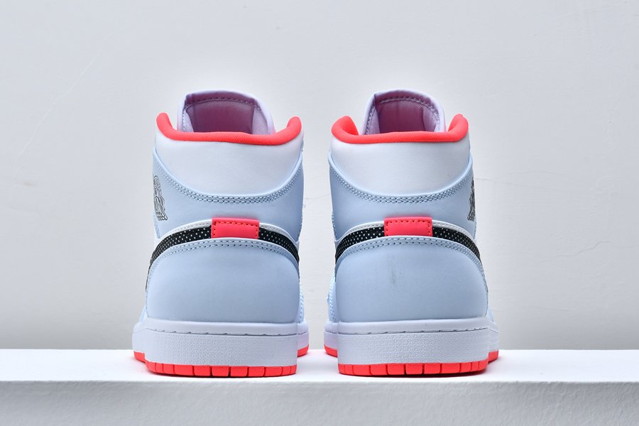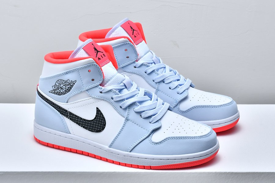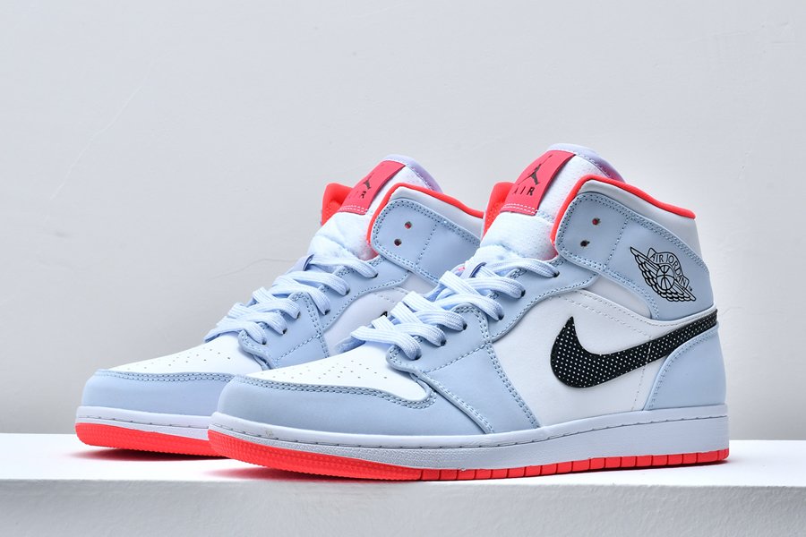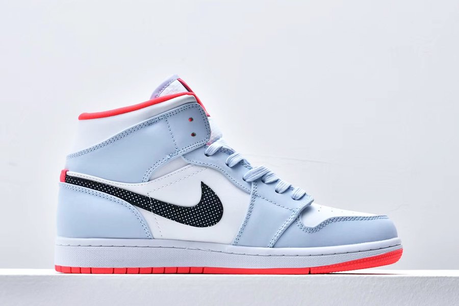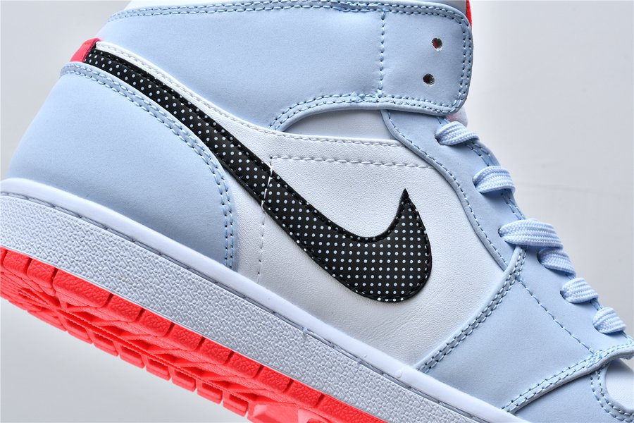 The Air Jordan 1 Mid GS “Half Blue” is the youth sizing of the polka dot-adorned mid-top lifestyle shoe. Jordan Brand looks out for all the young aspiring sneaker fans by lacing Michael Jordan’s first signature design with a stark white leather base that covers the mid-panel, perforated toe and collar. Light blue leather overlays can be found on the forefoot, eyelets and collar. A contrasting red liner, black outlined Wings logo on the collar and polka dot leather Swoosh on the mid-panel add fun, unique styling to the children’s shoe. The look is finished off with a white midsole and attention-grabbing red outsole.