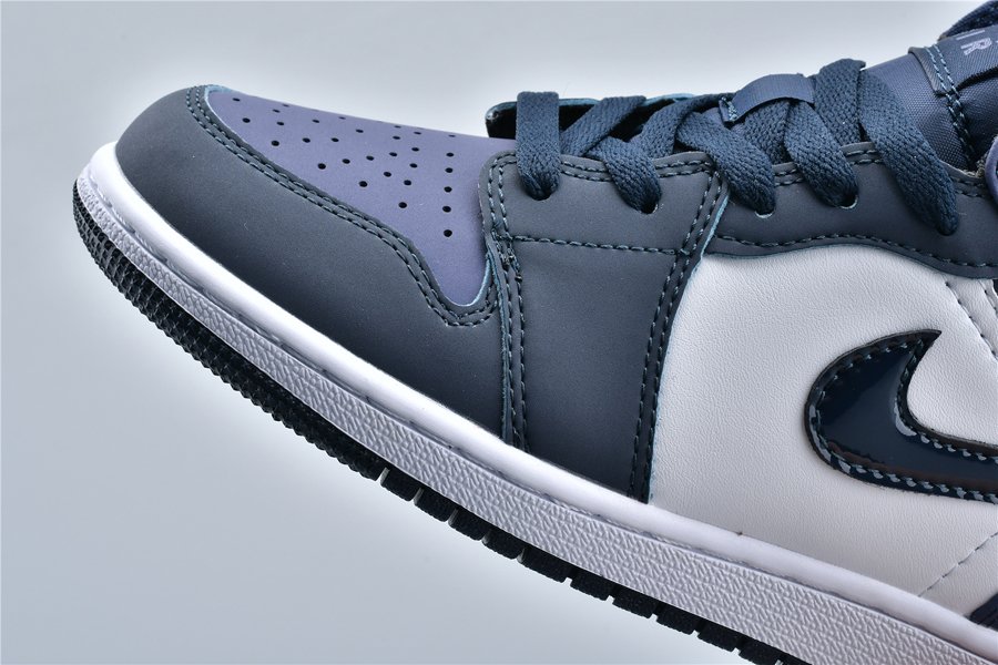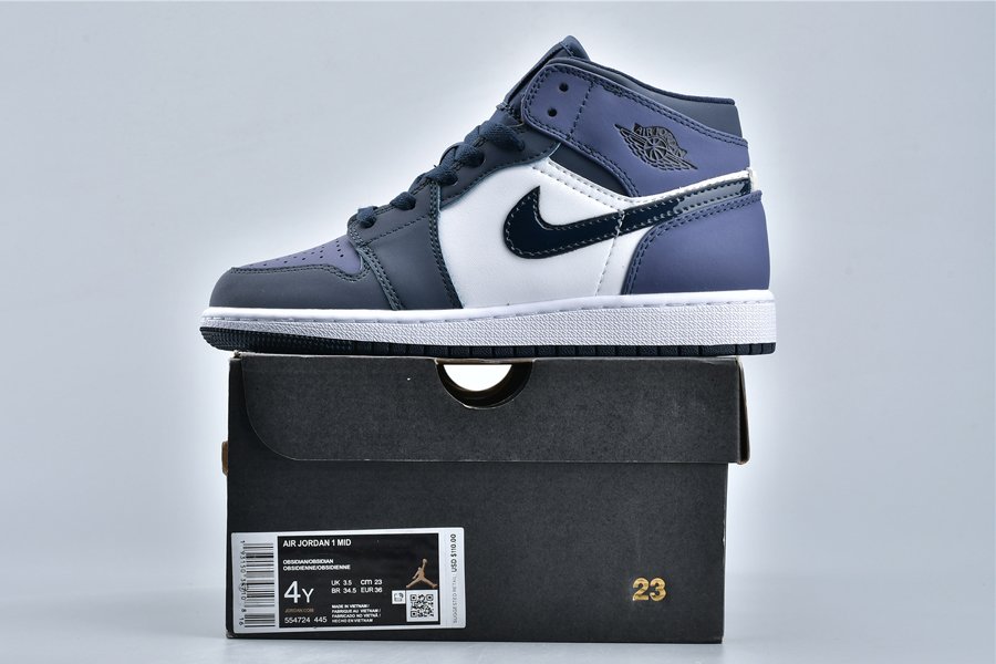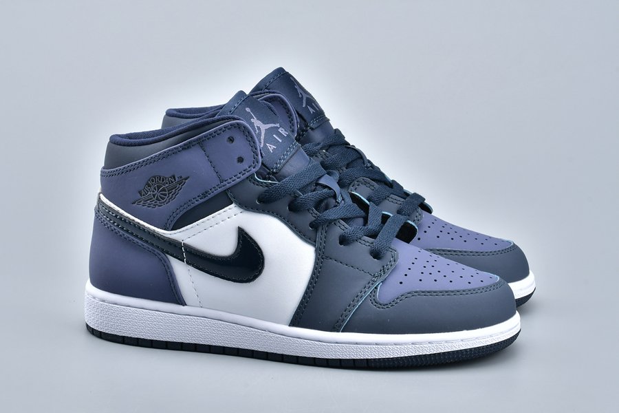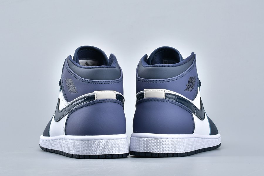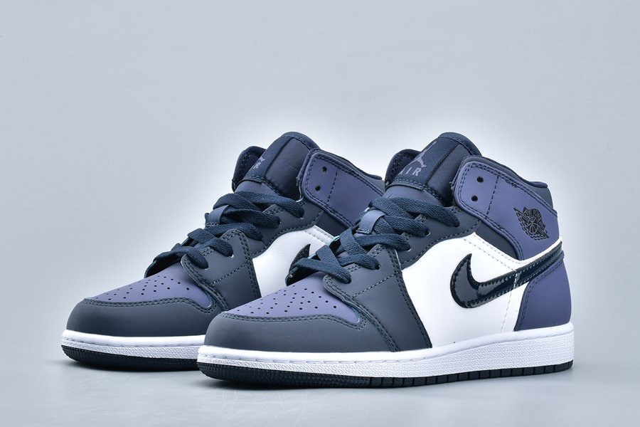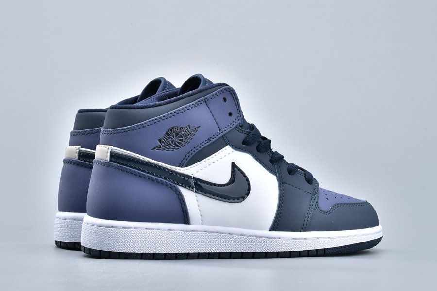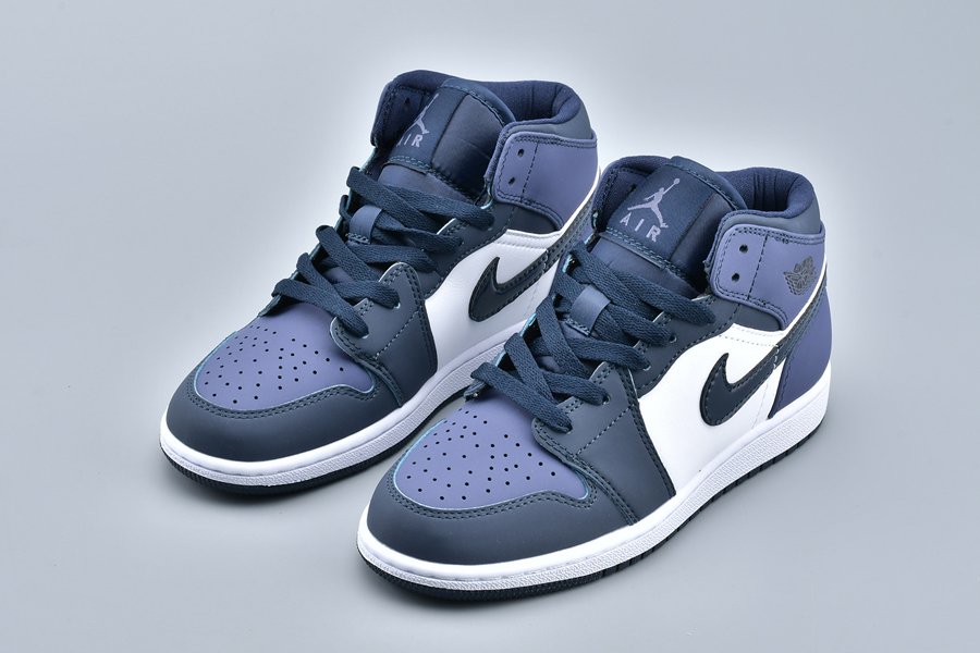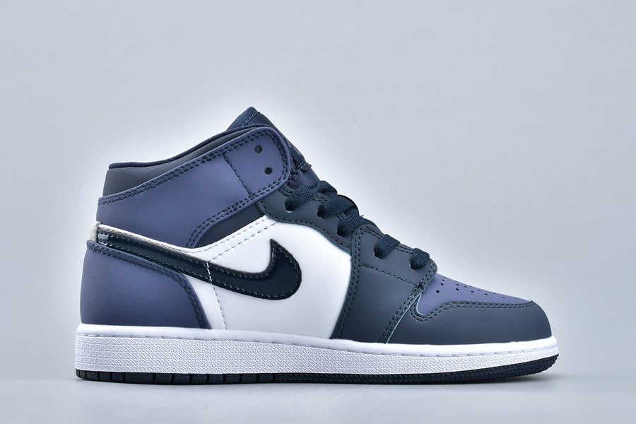 The new Jordan 1 Mid is dressed in an Obsidian, Sanded Purple, and White color scheme. The Air Jordan 1 Mid brings full-court style and premium comfort to an iconic look. Its Air-Sole unit cushions play on the hardwood, while the padded collar gives you a supportive feel.