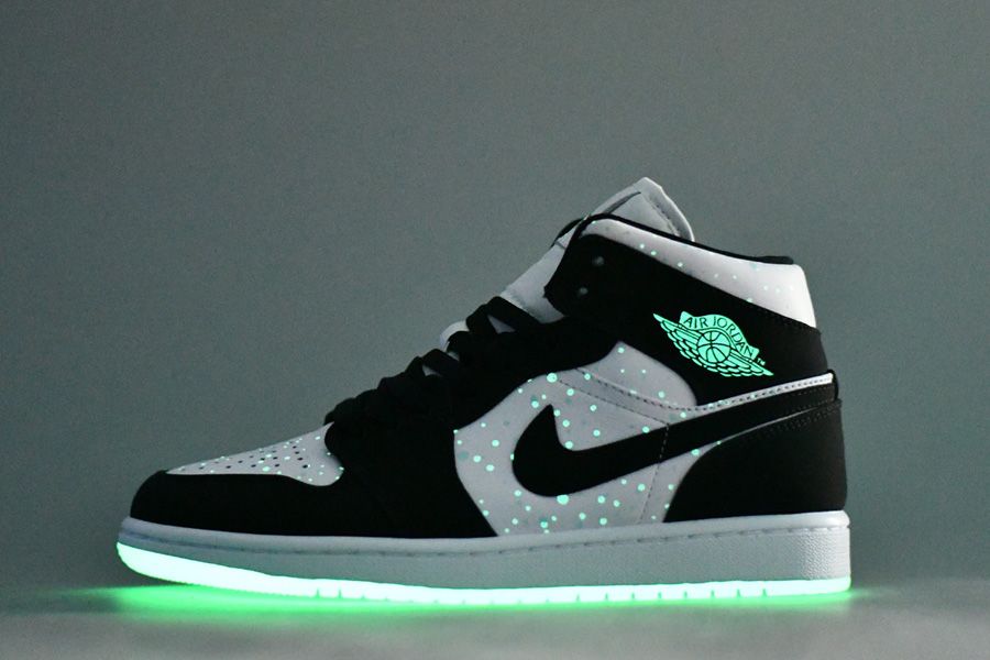 This Air Jordan 1 Mid SE “Panda” comes constructed with White leather on the base while Black nubuck lands on the overlays. Adding to the look is Teal Tint applied to the Wings logo and rubber outsole which glows in the dark.