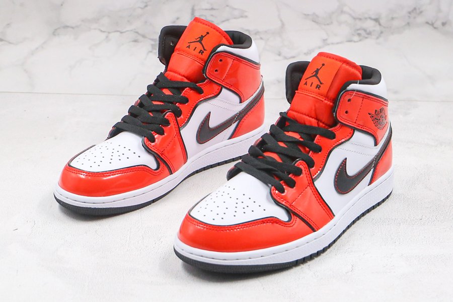 This latest iteration of the Air Jordan 1 Mid comes dressed in a Turf Orange, Black, and White color scheme. The shoe is constructed out of White leather underlays paired up with Turf Orange patent leather overlays. Other details on the shoe include the Black on the Swooshes, laces, lining and rubber outsole. A White midsole rounds out the main features of the shoe.