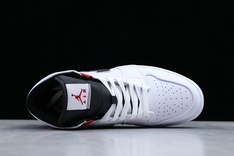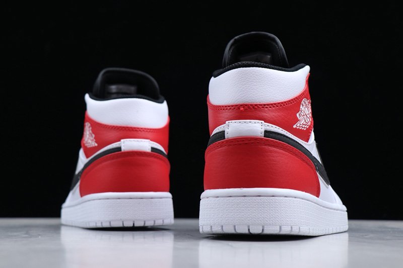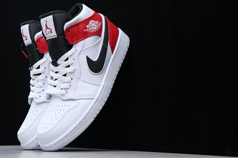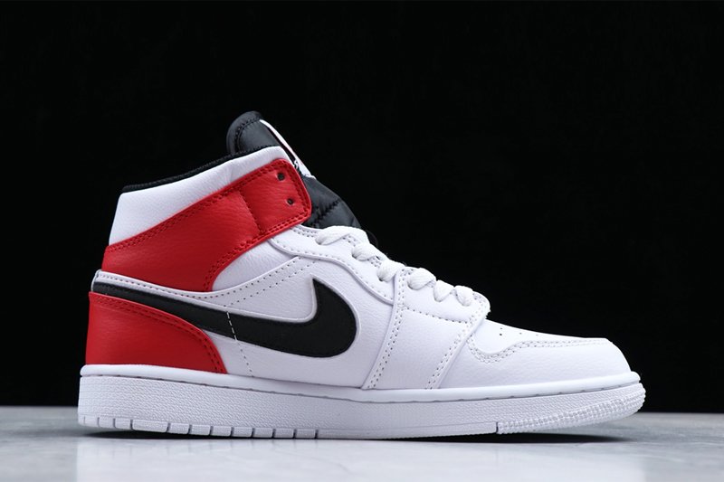 This time around the White, Red and Black Jordan 1 Mid comes dressed in a White leather upper contrasted by the Red and Black textured suede noted on the heel/collar overlays and Swoosh branding. A Black nylon tongue, White tongue tag, White laces and White sole round out the main features of the shoe.