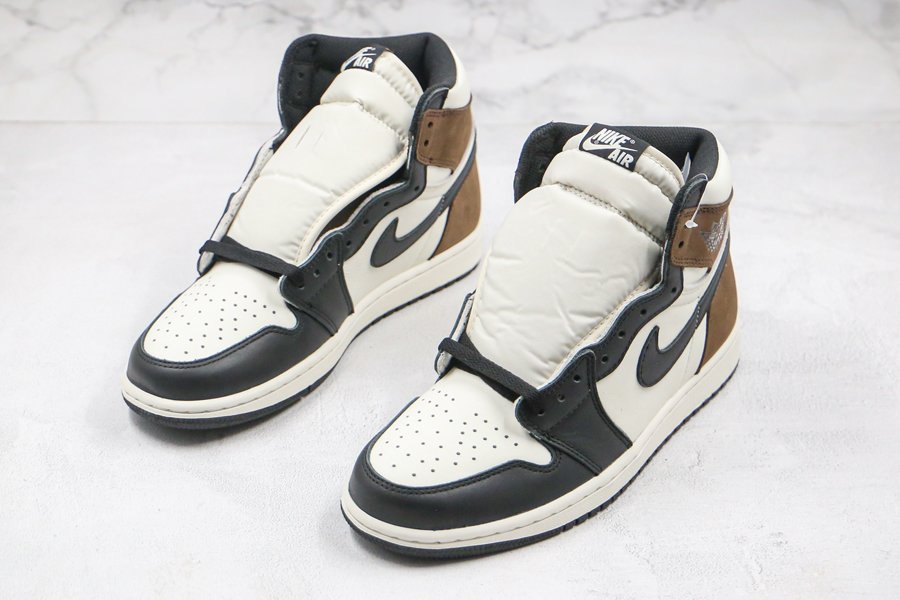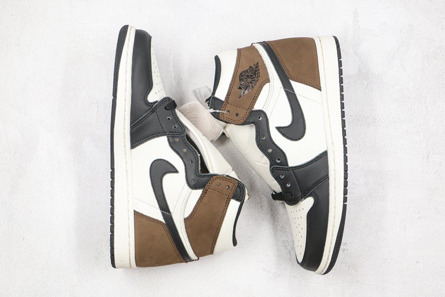 Boasting clean sail leather that adorns the toe, side panels, and ankle portion, the highlight Dark Mocha suede overlays are prominent on the ankle/heel, while black leather is applied on the eyestays, midfoot, and toe cap. Finally, black tongue tags with Nike Air branding, matching Wings logo and Swooshes, followed by a Sail rubber midsole and black rubber outsole top off the design.