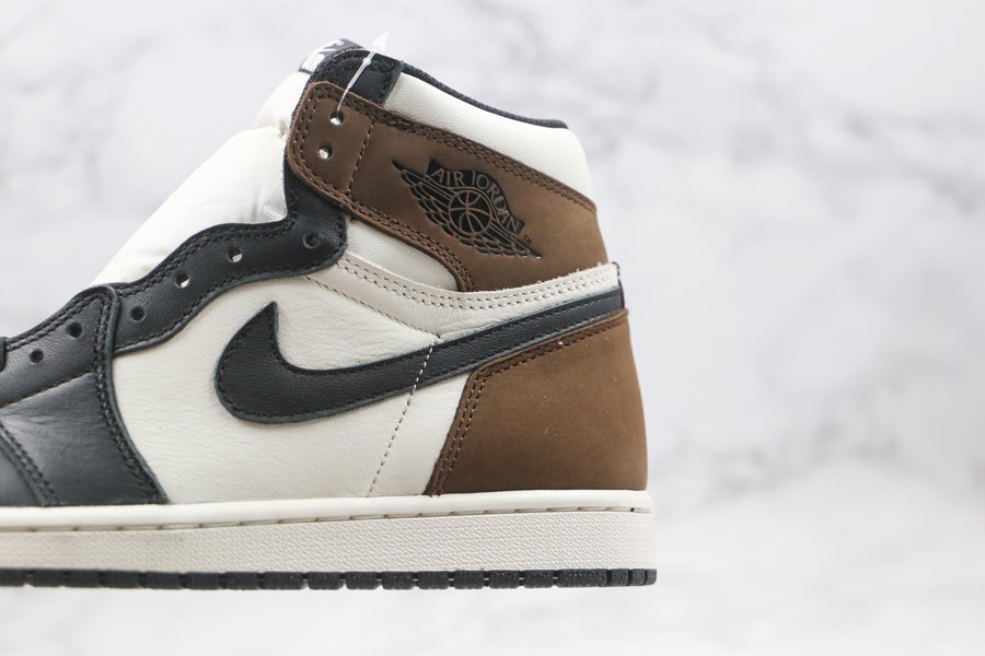 Boasting clean sail leather that adorns the toe, side panels, and ankle portion, the highlight Dark Mocha suede overlays are prominent on the ankle/heel, while black leather is applied on the eyestays, midfoot, and toe cap. Finally, black tongue tags with Nike Air branding, matching Wings logo and Swooshes, followed by a Sail rubber midsole and black rubber outsole top off the design.