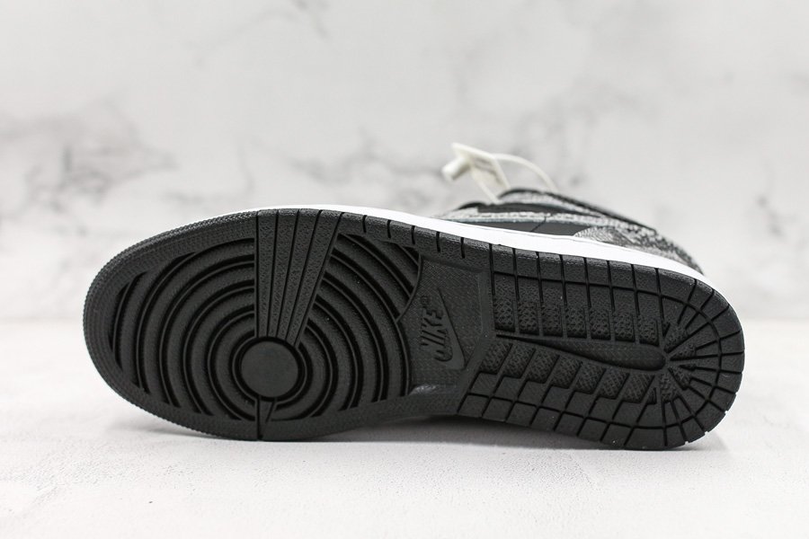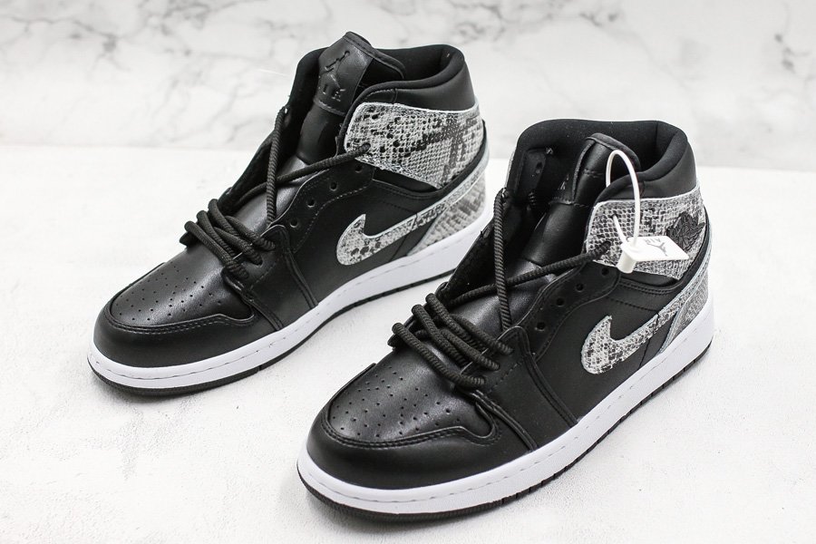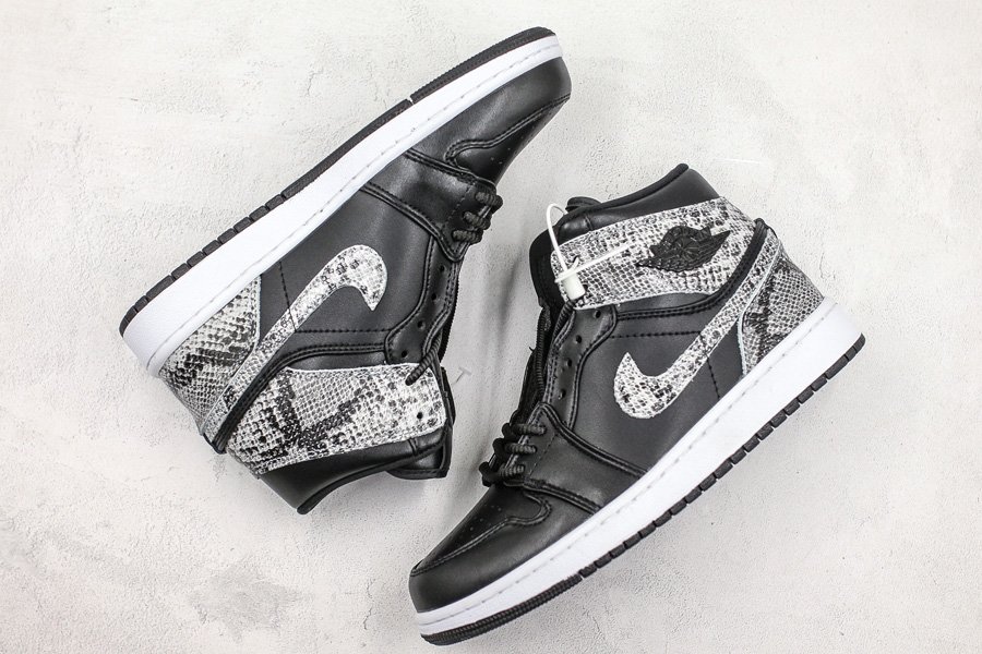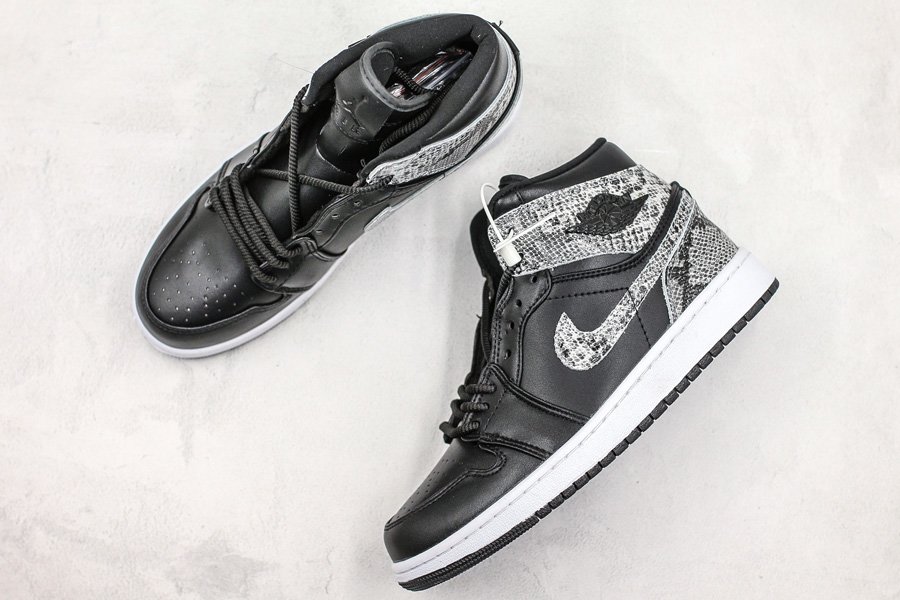 As you can see, this pair has a similar feel to the ‘Shadow’ Air Jordan 1. Constructed with Black leather on the upper while Grey snakeskin lands on the Nike Swoosh logo and around the heel. Other highlights includes White on the midsole and a Black rubber outsole.