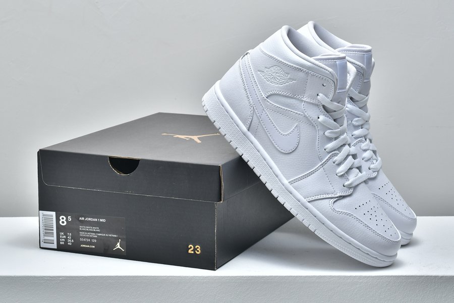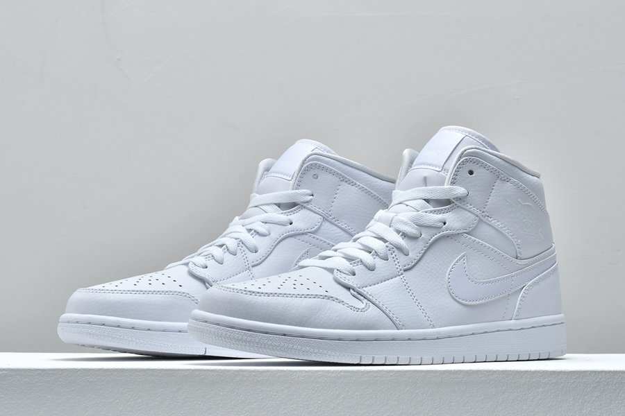 A clean and can’t-go-wrong look for the warmer days ahead, this Air Jordan 1 Mid comes constructed out of both smooth and tumbled leather done in the holy hue. More White hits can be found on the laces, lining, branding, sole unit and insoles.