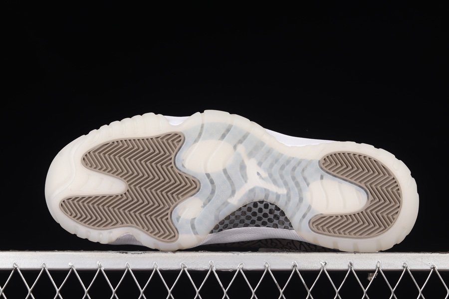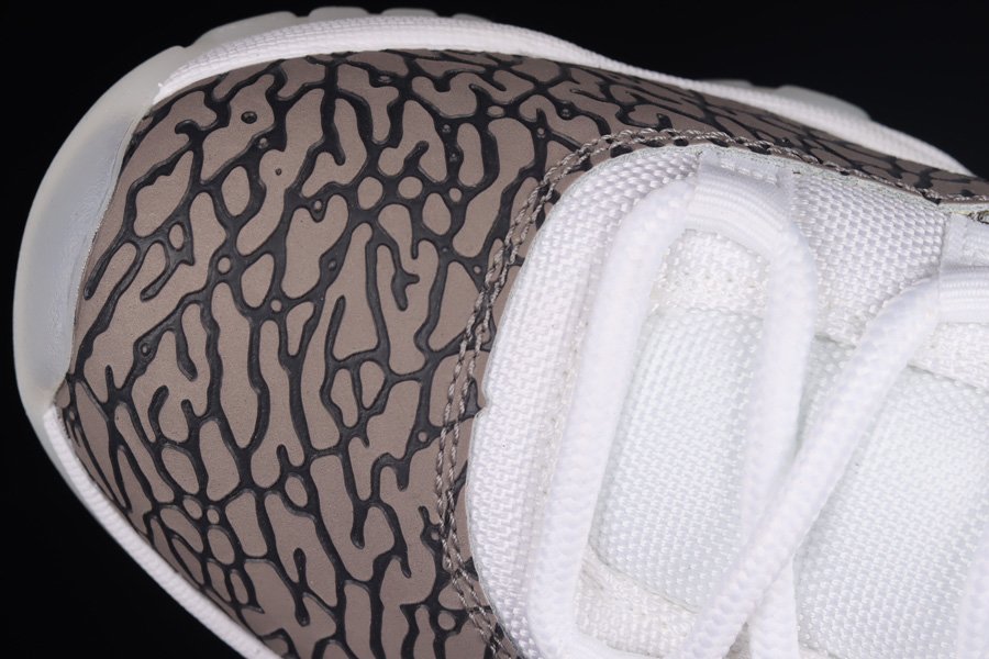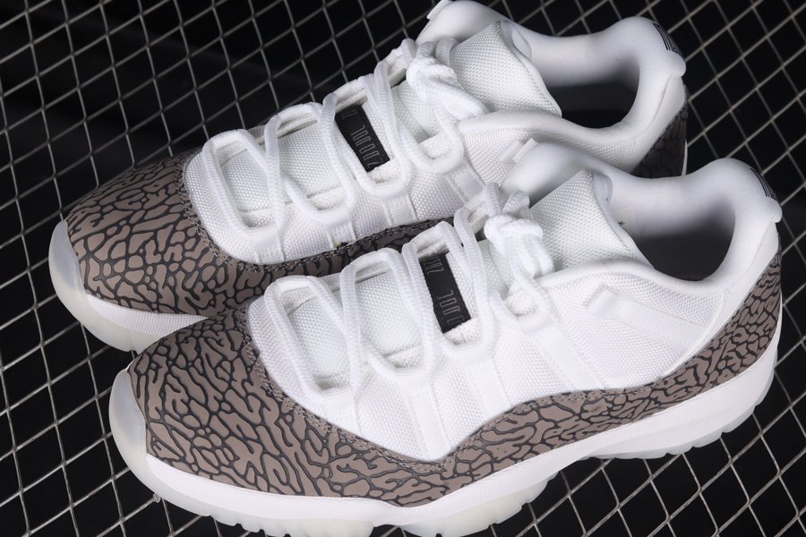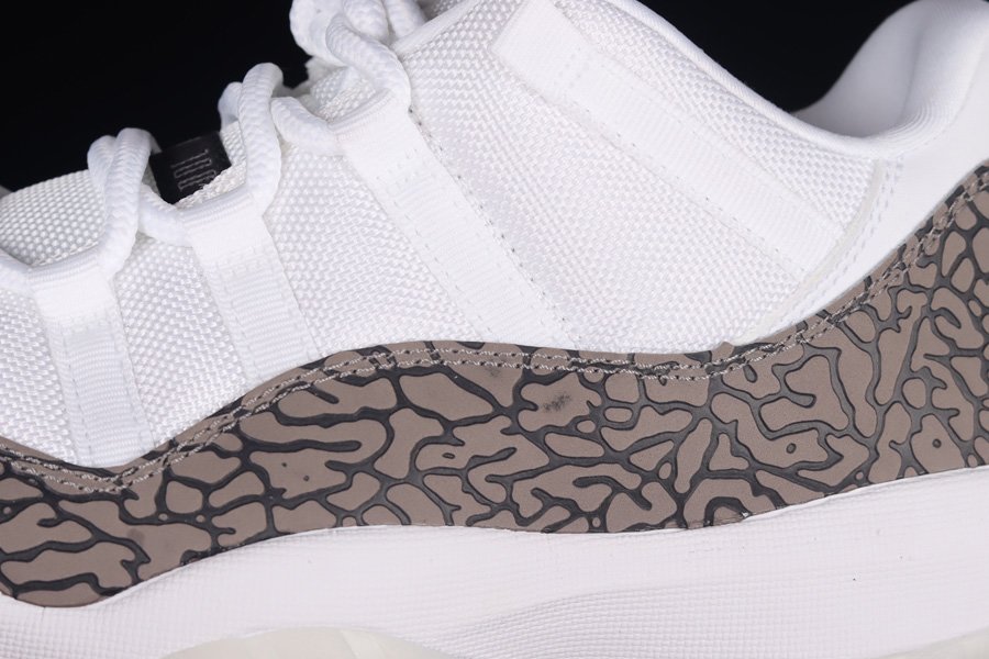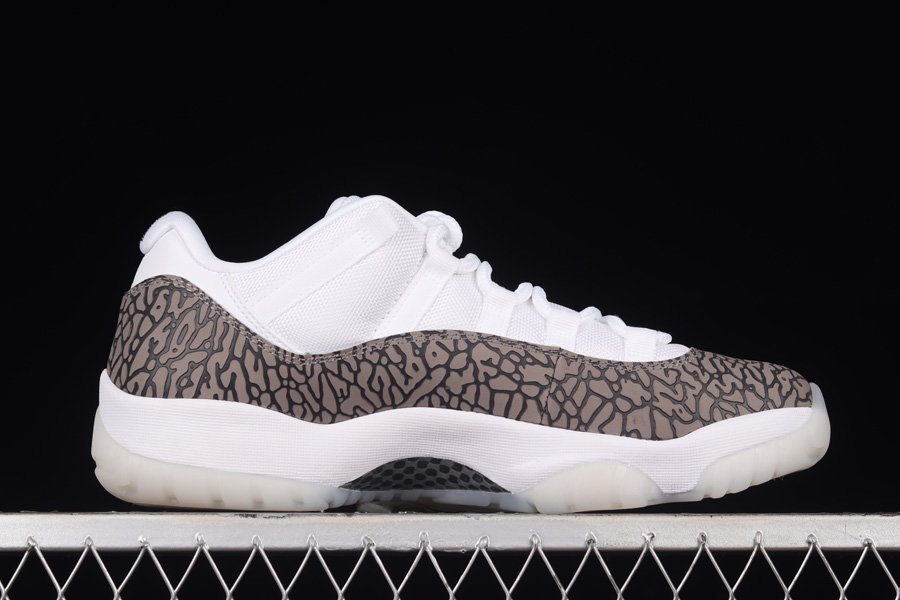 The Air Jordan 11 low-top edition boasts a White mesh upper and is accentuated by elephant print mudguards. The design is completed with University Blue Jumpman branding on a White midsole, and a translucent outsole.