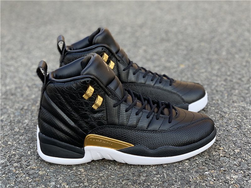 Styled similar to the 2016 “Wings” Air Jordan 12, the Air Jordan 12 “Midnight Black” sports black leather uppers with the highlight croc and snakeskin prints seen on the mudguard, collar and heel area. Completing the design are gold accents on the upper eyelets and miniature branded side badges for a luxe theme, followed by a white rubber sole.