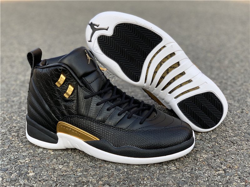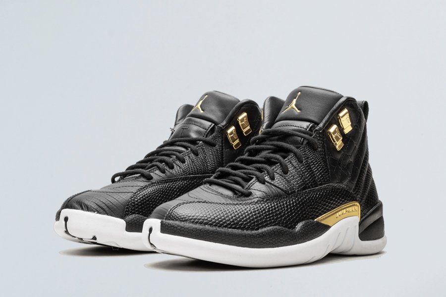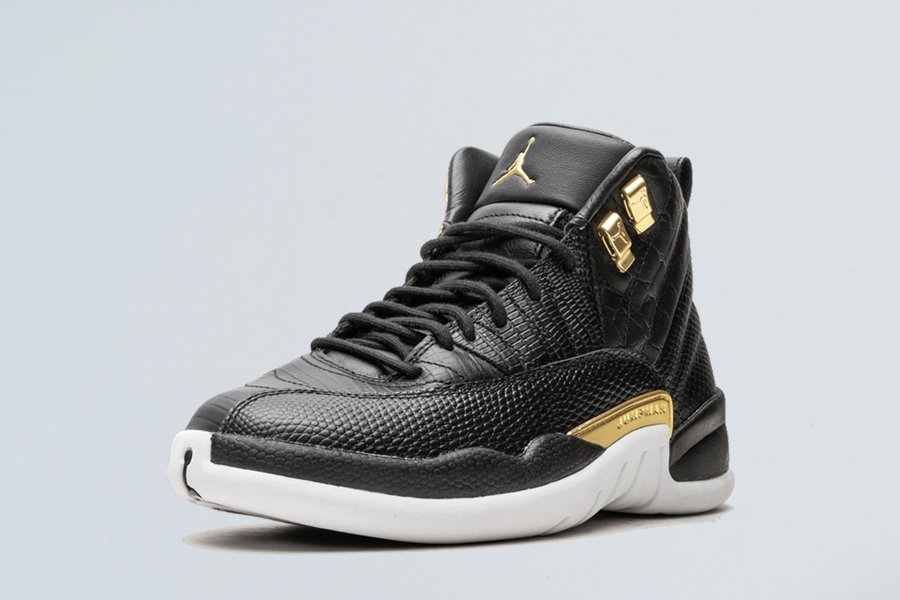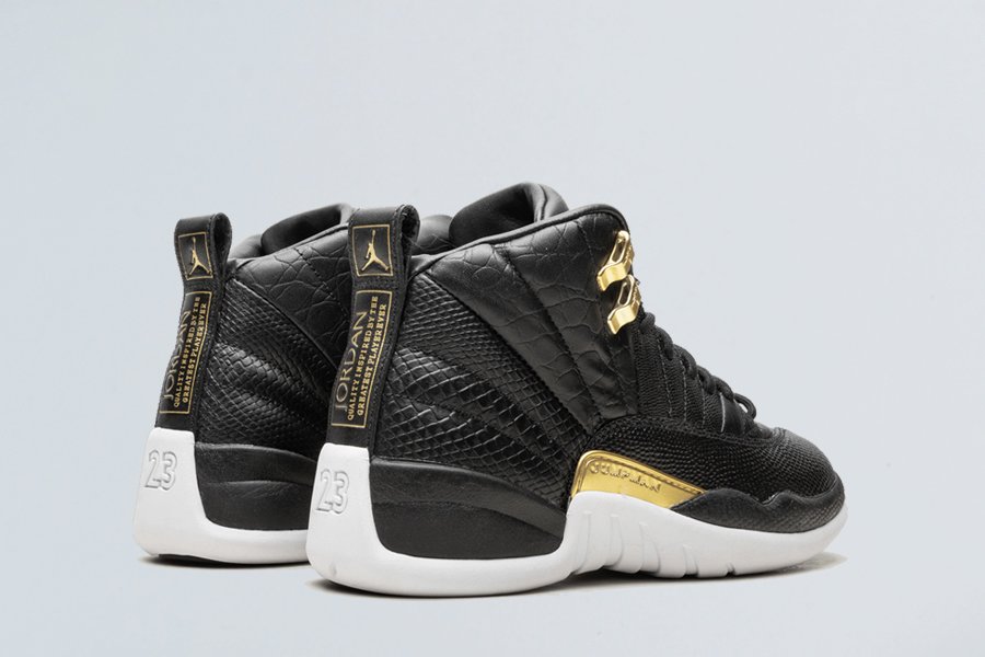 Styled similar to the 2016 “Wings” Air Jordan 12, the Air Jordan 12 “Midnight Black” sports black leather uppers with the highlight croc and snakeskin prints seen on the mudguard, collar and heel area. Completing the design are gold accents on the upper eyelets and miniature branded side badges for a luxe theme, followed by a white rubber sole.