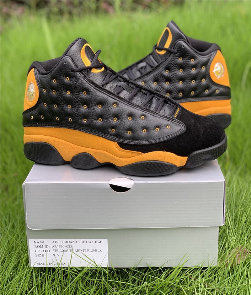 Essentially draped in the school’s signature famous yellow tone and contrasted with black, the Air Jordan 13 is detailed with the aforementioned features above.