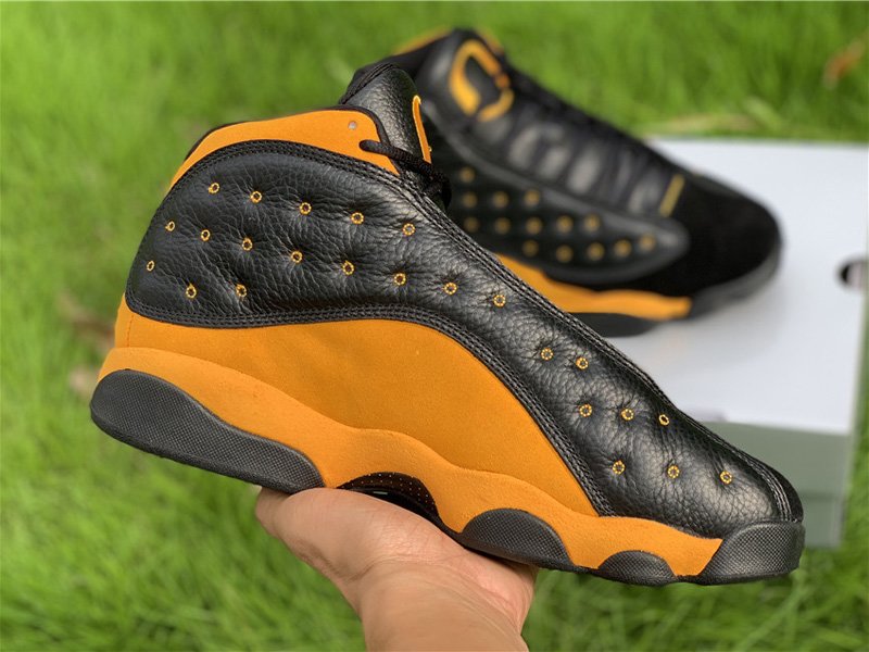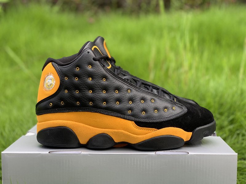 Essentially draped in the school’s signature famous yellow tone and contrasted with black, the Air Jordan 13 is detailed with the aforementioned features above.