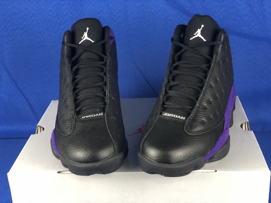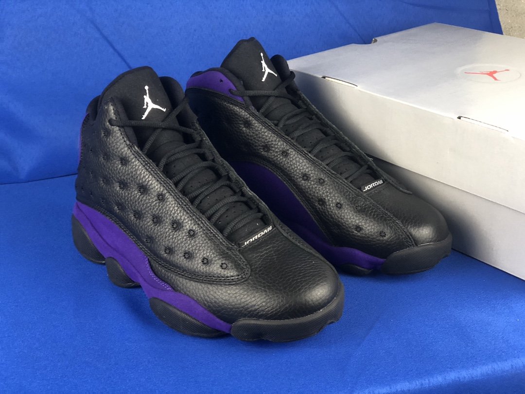 The Air Jordan 13 “Court Purple” is suggested to feature black smooth and tumbled leather uppers that are offset purple nubuck overlays on the mudguard and heel area. Finally, black midsoles and white rubber outsoles top off the design.