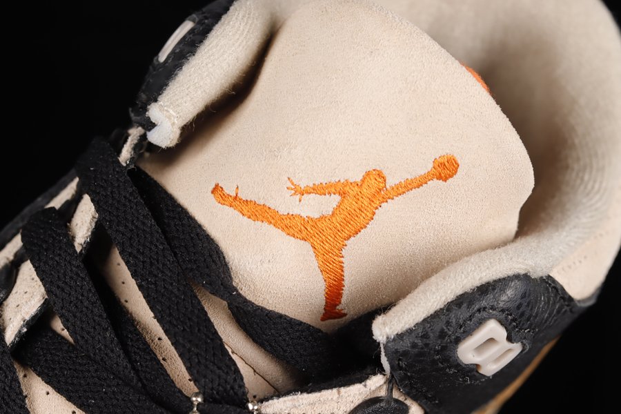 This Air Jordan 3 comes dressed in a Black, Rush Orange, Fossil Stone, and Sail color combination. Like mentioned, the look resembles the ‘Black Cement’ pair but comes with a Desert finish across the elephant print that wraps the toe and heel. Next, Black tumbled leather runs across the upper and Red appears on the Jumpman on the tongue and bottom eyelets. Finally, a White midsole and a Grey rubber outsole finish the look.