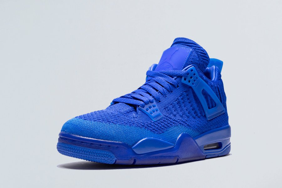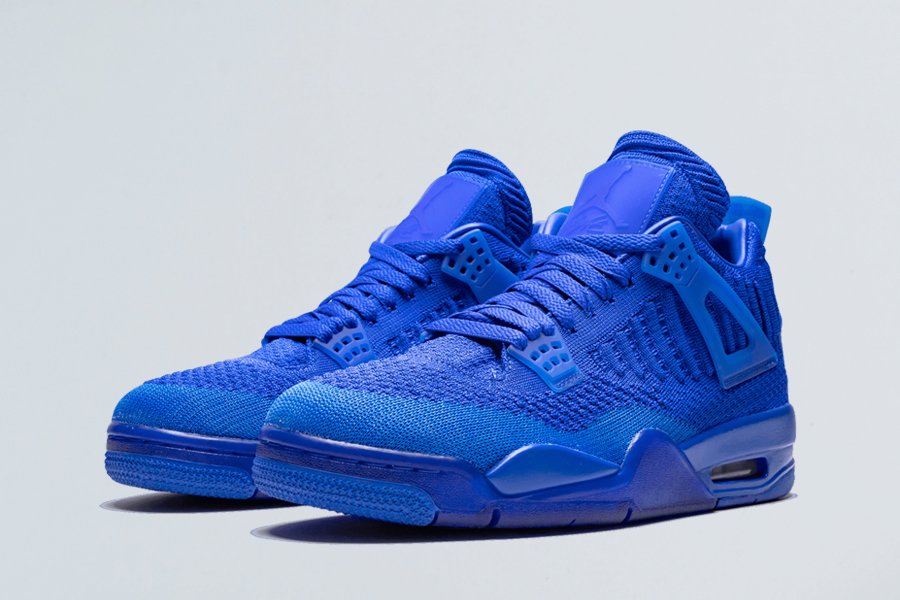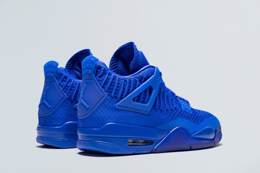 This Air Jordan 4 features Flyknit across the upper while covered in Hyper Royal. The same shade lands on the translucent wing overlays, tongue and heel. In addition we have a Black Jumpman on the insole while Hyper Royal takes over the rubber outsole to complete the look.