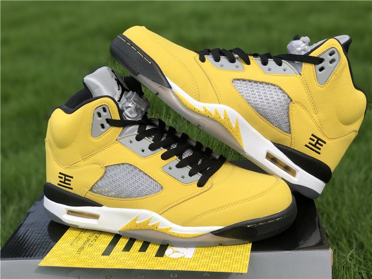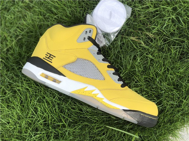 Commemorating the opening of Jordan Tokyo 23, Jordan Brand presents the Air Jordan 5 Tokyo 23. This special collaboration consists of a suede yellow upper, the Jordan 5’s signature 3M metallic tongue and clear accents such as the sole and netting, and Jordan Brand’s signature cement print in black and yellow. The sidewall of the Air Jordan 5 Tokyo 23 has a unique “23” symbol – a highlight of the Shibuya Ward of Japan.