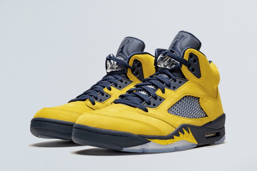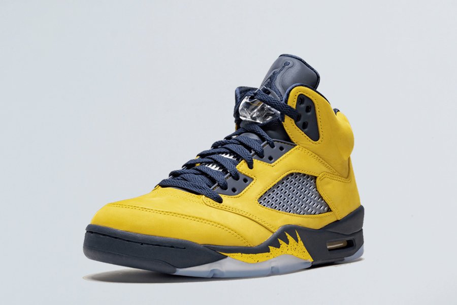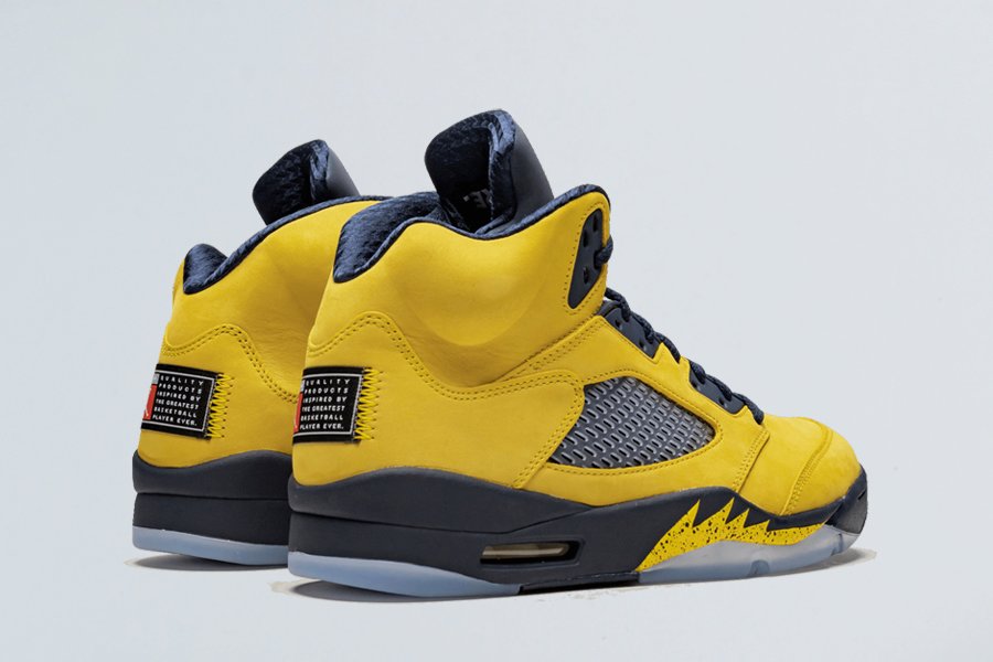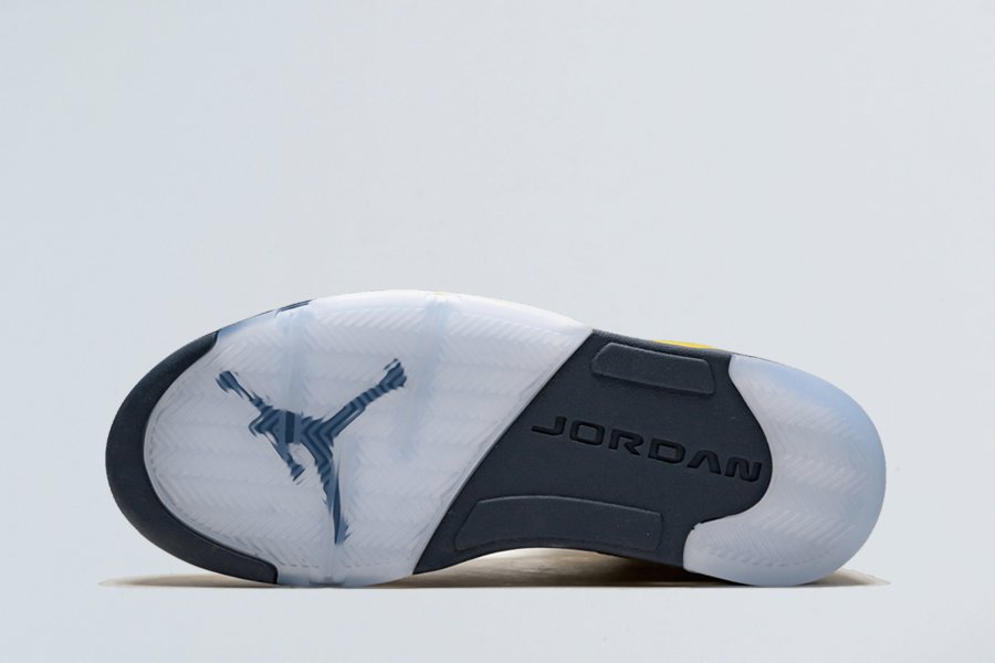 Dressed in an Amarillo/College Navy-Amarillo color scheme, the model flaunts yellow nubuck uppers that are contrasted by navy placed on the eyestay, tongue and midsole. Yellow shark teeth with speckling is also noted on the midsole, while it’s paired with an icy blue translucent outsole. According to Nike, the colorway takes inspiration from the classroom with its heel featuring a custom Jordan team jock tab with a special message to celebrate Jordan-sponsored colleges as they head back to school this fall. Distinct features include Jumpman badges stitched on the heels, the word “Inspire” in upside-down sewn behind the tongues, and tonal Jumpman branding on the reflective tongues.