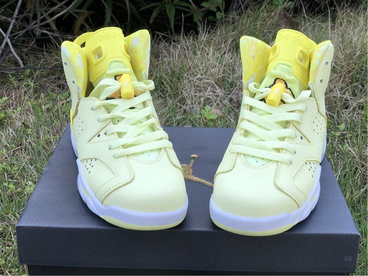 This grade school-exclusive colorway of the Air Jordan 6 is covered in an official mix of Crimson Tint, Dynamic Yellow, Black, and White. The shoe starts off with a tonal soft yellow hue across its upper while brighter shades of yellow are applied throughout for more vibrance. Finishing details consist of a yellow flower embroidery on the tongue with a black Jumpman overlay, followed by a floral pattern printed on the lining, and a white midsole.